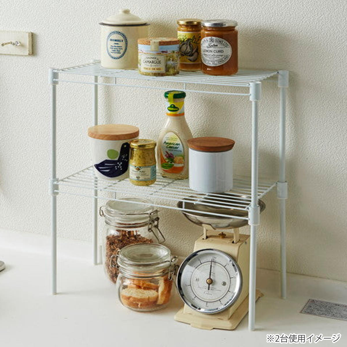 ラックは2台まで重ねて使用することができます。縦の空間を活かすことで、限られたスペースを無駄なく活用できます。しっかりとした作りなので、重ねても安定感があります。