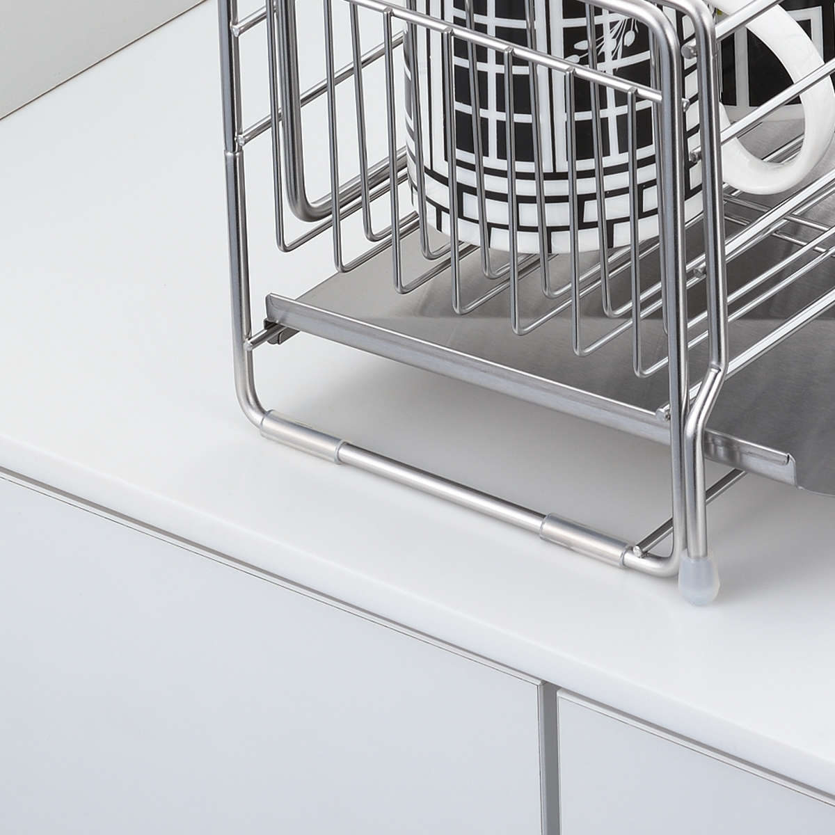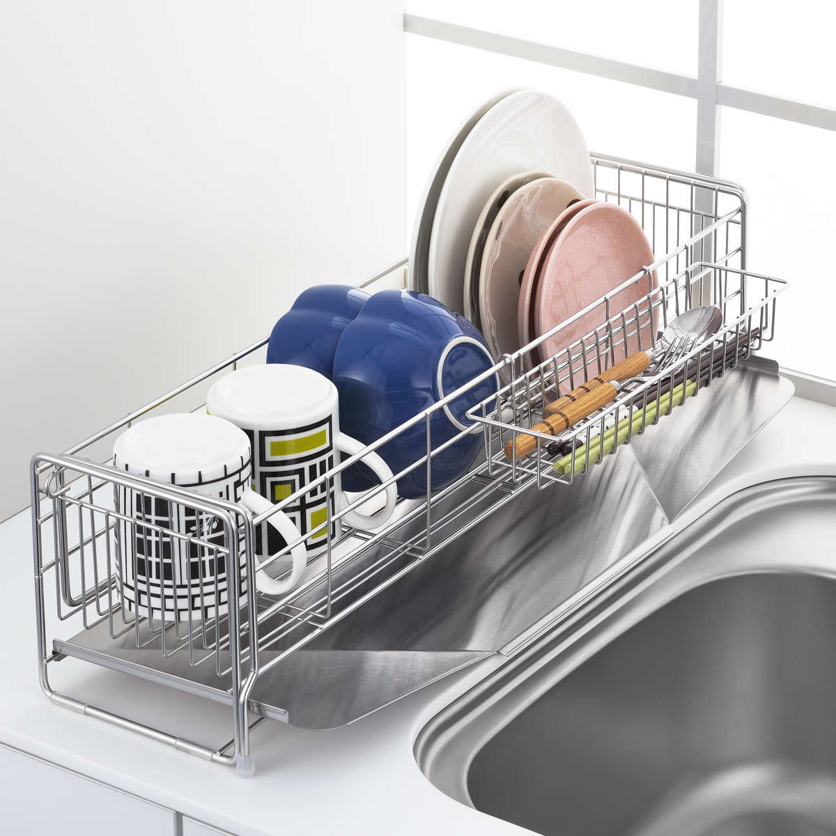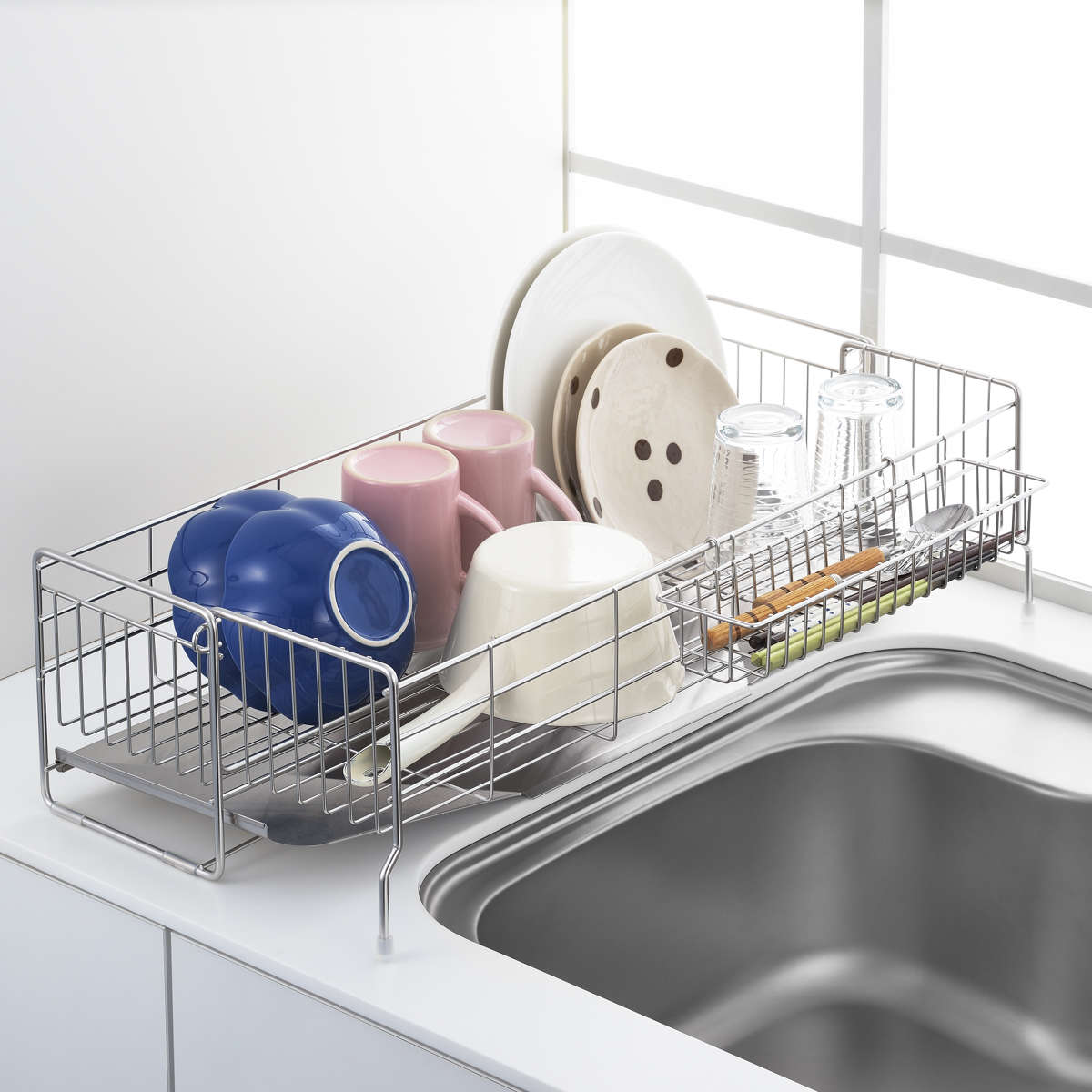 使わないときはコンパクトに、必要なときは広げて使える伸縮式の水切りラック。場所を取りがちな水切りも、サイズ調整で限られたキッチンスペースを有効活用できます。
