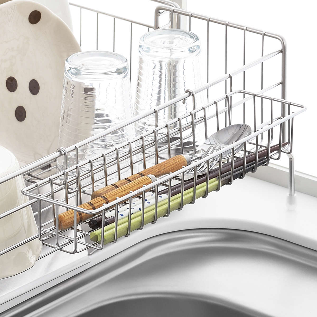 好きな位置に引っ掛けるだけで、簡単に取り付けられます。浅型タイプなので、カトラリーはもちろん、水筒のパッキンなど細かな小物もしっかり乾かせます。