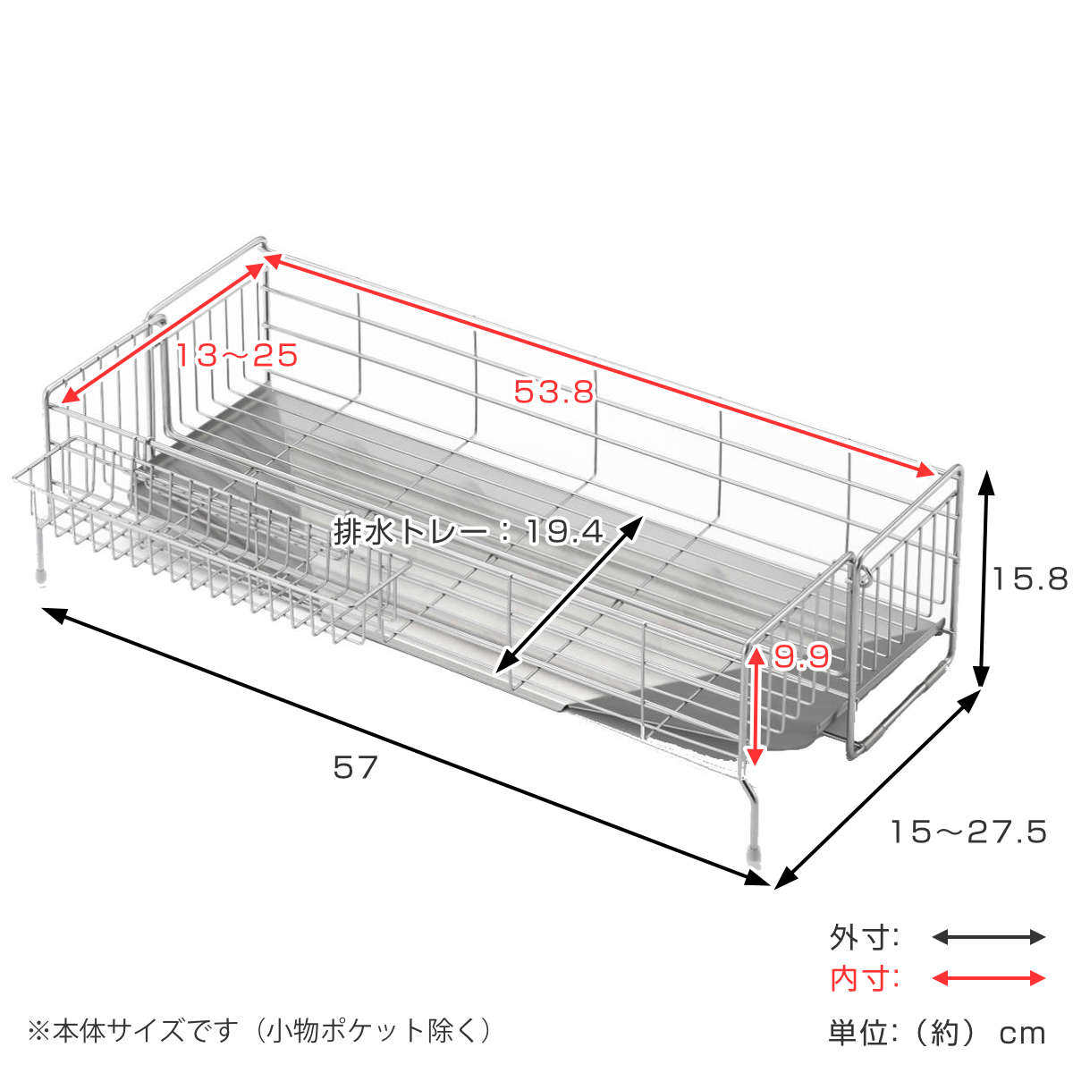必要な時だけ広げて使える水切りラック 奥行57cm