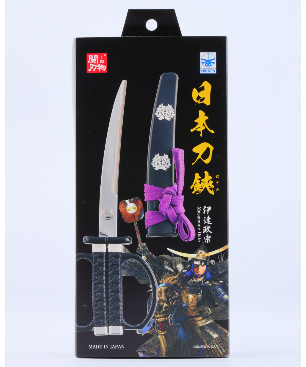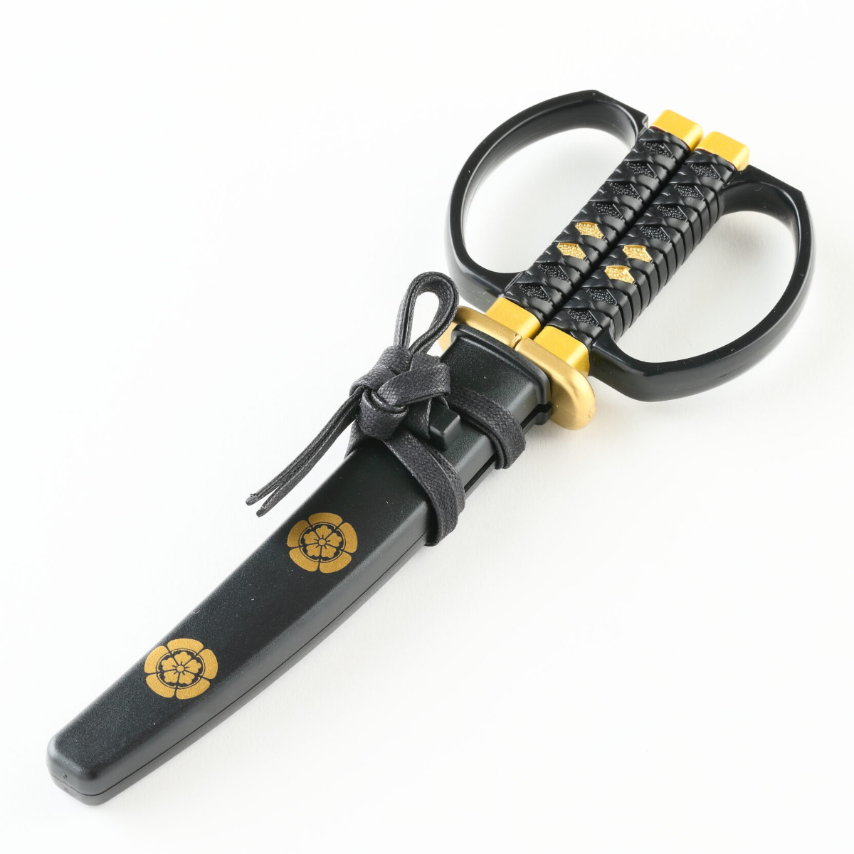 ●戦国武将の名刀をモチーフにした家紋入りの日本刀はさみです。