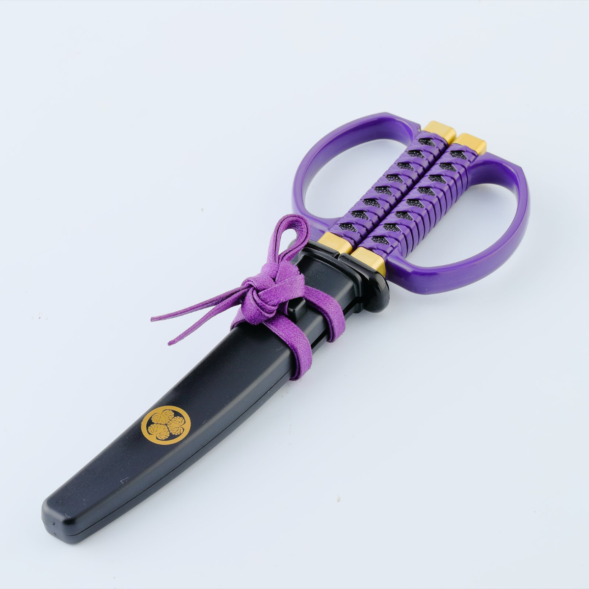 戦国武将の名刀をモチーフにした家紋入りの日本刀はさみです。刃物の町、岐阜県関市の刃物職人が1本1本丁寧に刃付けをしています。。鞘には家紋が入っていて、鞘からの出し入れが楽しくなります。歴史好きや刀剣好きの方へのプレゼントとして最適です。