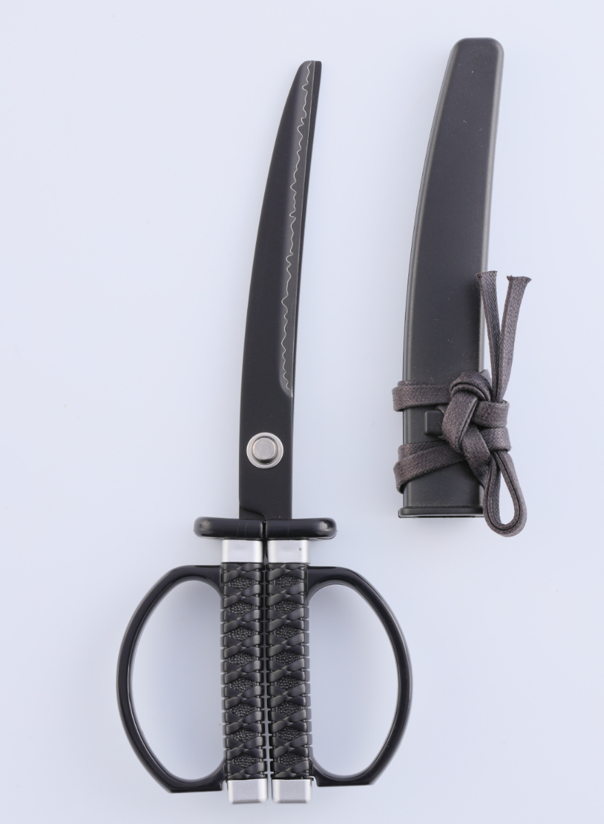 ●忍者刀をモチーフにした掛け台付きの日本刀はさみです。
