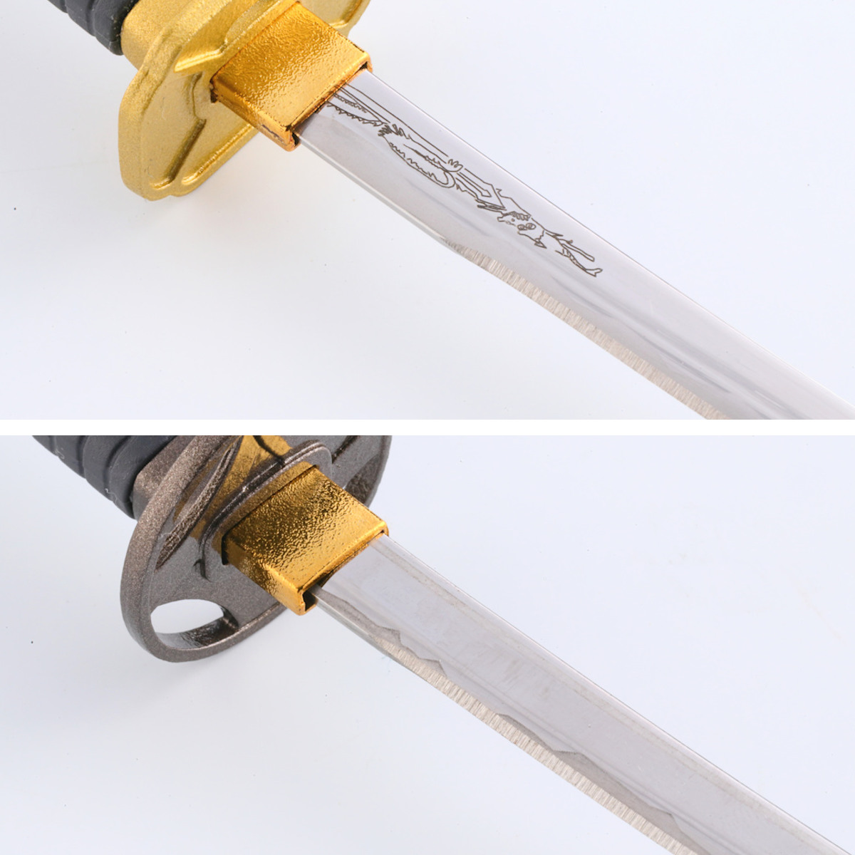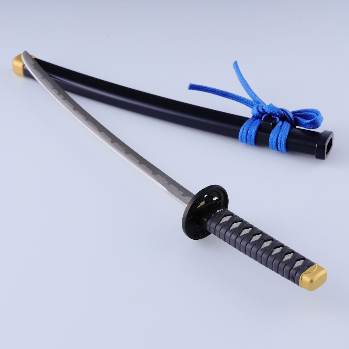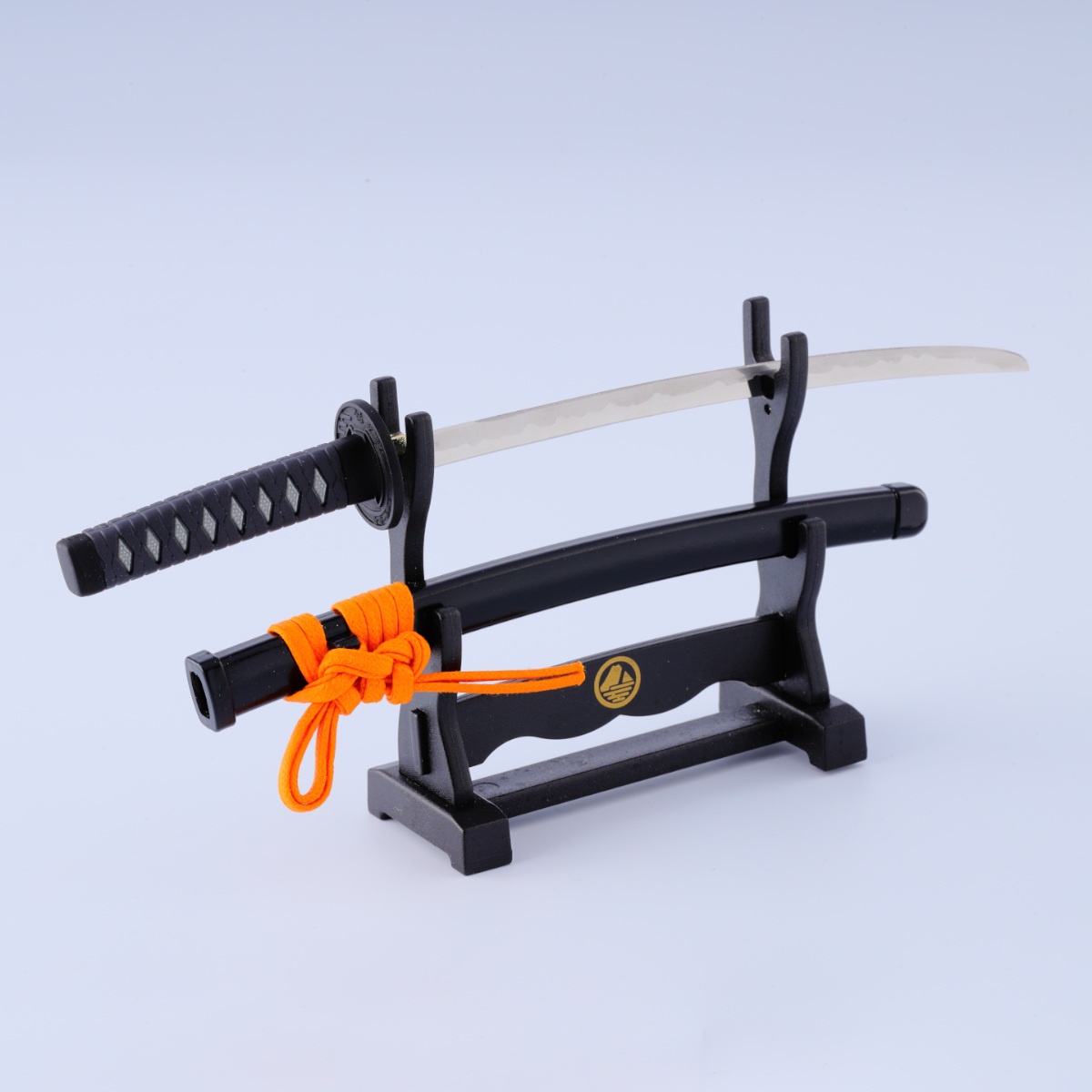・鞘は光沢のある黒色(紺交じり)。刃体には互の目乱れ刃紋入り。