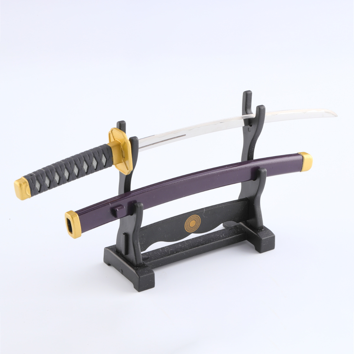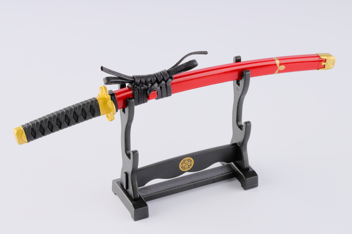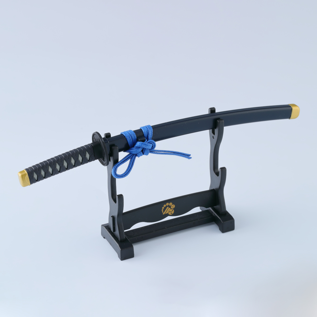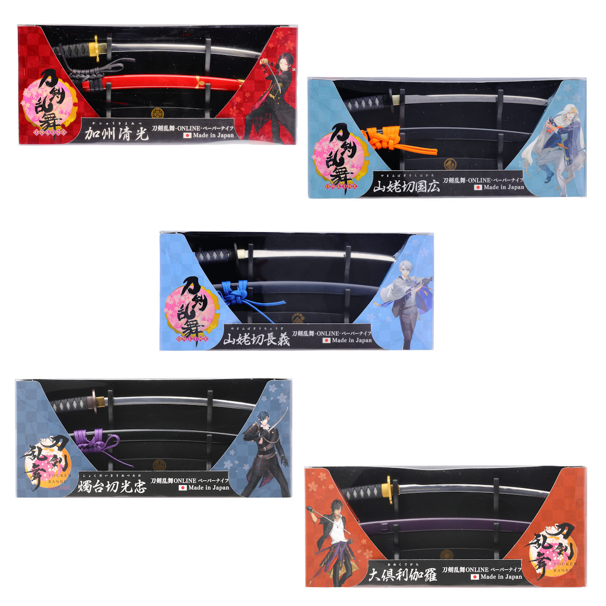 人気オンラインゲーム「刀剣乱舞」に登場する刀剣がモチーフになったペーパーナイフです。刀剣男士の紋入り掛け台が付属しているので、使わない時はお部屋に飾れて、鑑賞用としても楽しめます。