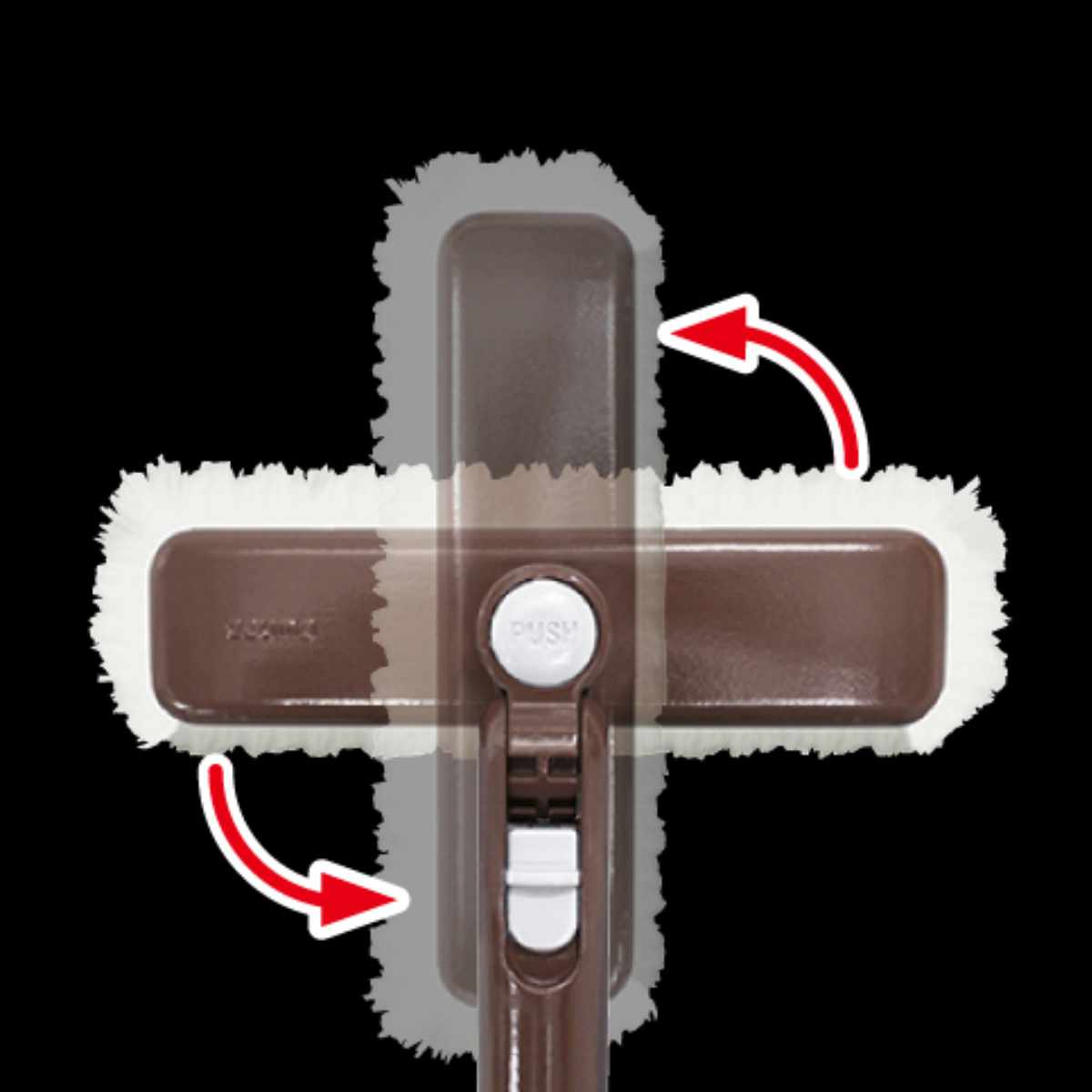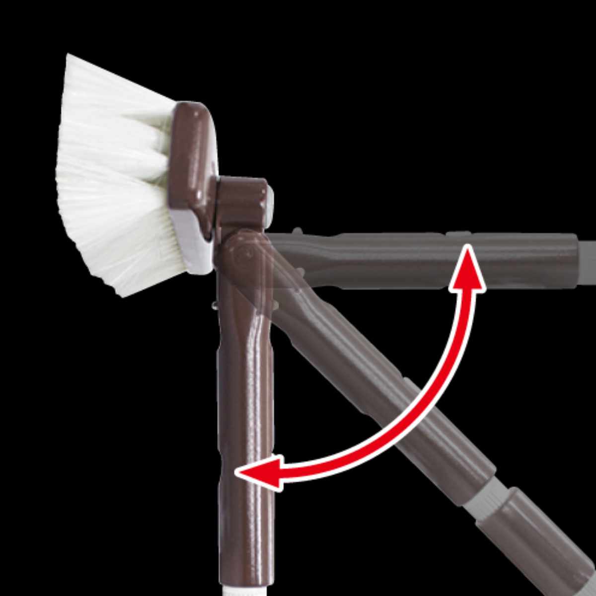 ブラシは90度ずつ回転し、縦・横に切り替え可能です。配管やシャッターなど掃除場所の形状に沿って隅々まできれいにできます。