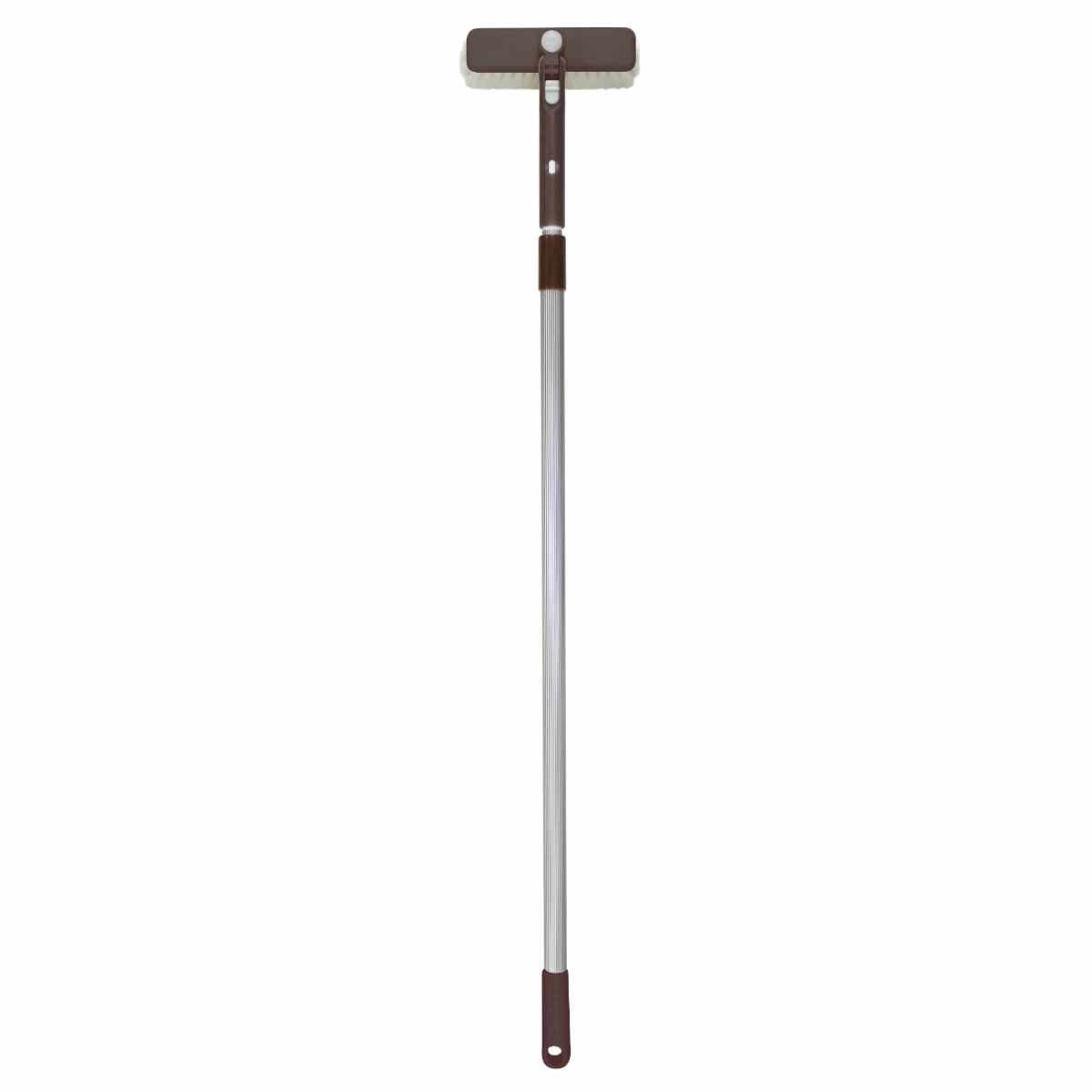 外壁についたコケやカビなどの汚れを柔らかい毛先でやさしく落とせる外壁ブラシ(ロングタイプ)です。伸縮式の柄は約90~157cmまで調整でき、手の届きにくい高所の外壁・雨樋・シャッターなどをラクに掃除できます。