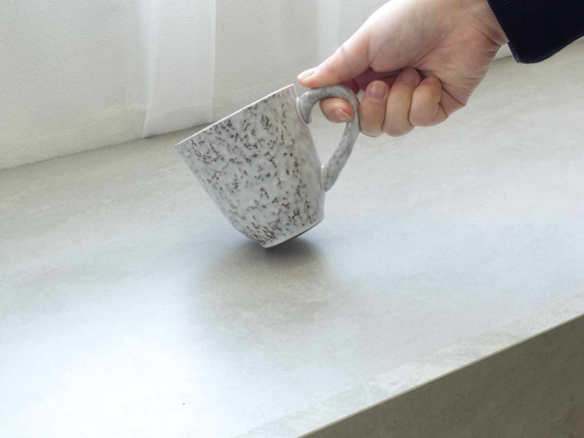 表面材には硬くて傷や熱に強いメラミン化粧板を使用しているので、キズがつきにくく、汚れてもサッと拭き取れます。紫外線や日光にも強く色あせしにくいので、長く美しい状態を保てます。また、天板の側面は少し高さを持たせているので、飾った小物などの落下を防ぎます。
