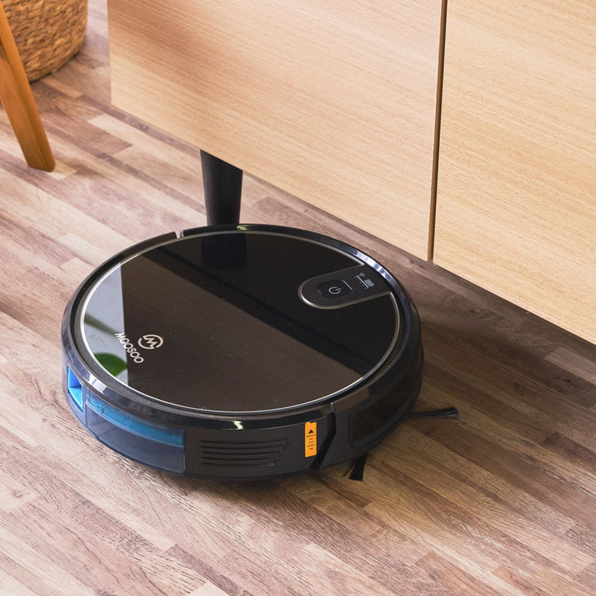 天然木を使用した脚部は、高さ約15cm。一般的なお掃除ロボットが通れる高さ設計なので、いつでも清潔を保つことができます。モップや掃除機も入れやすいので、お掃除がしやすいです。