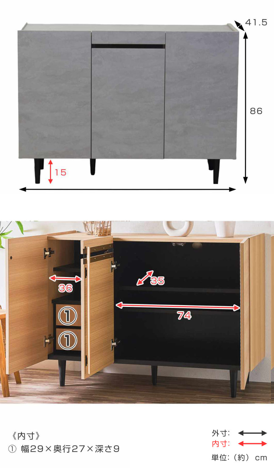 - 約幅120×奥行41.5×高さ86cm