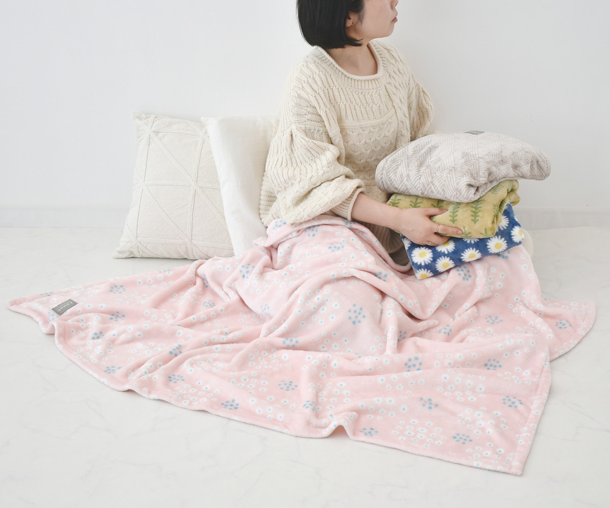 ふんわりやわらかく、とろけるような肌触りのブランケットです。ずっと触れていたくなるマイクロフランネル生地を使用しています。北欧テキスタイルをイメージしたデザインは、お部屋のインテリアにもしっくり馴染みます。