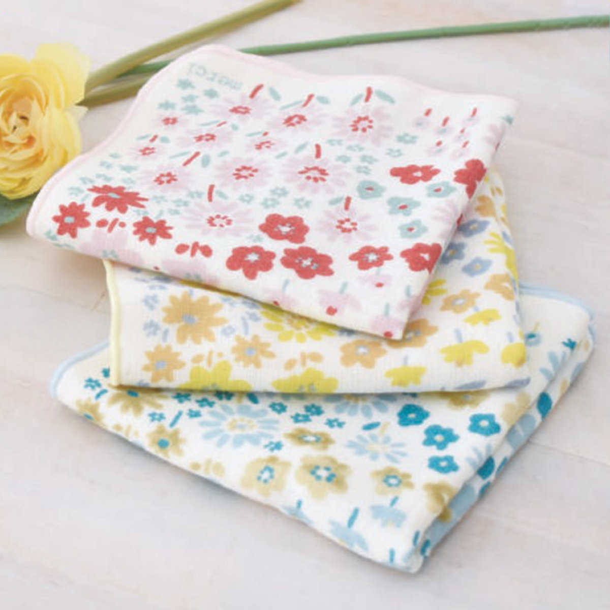 ●普段使いにぴったりな花柄のミニタオルです。
