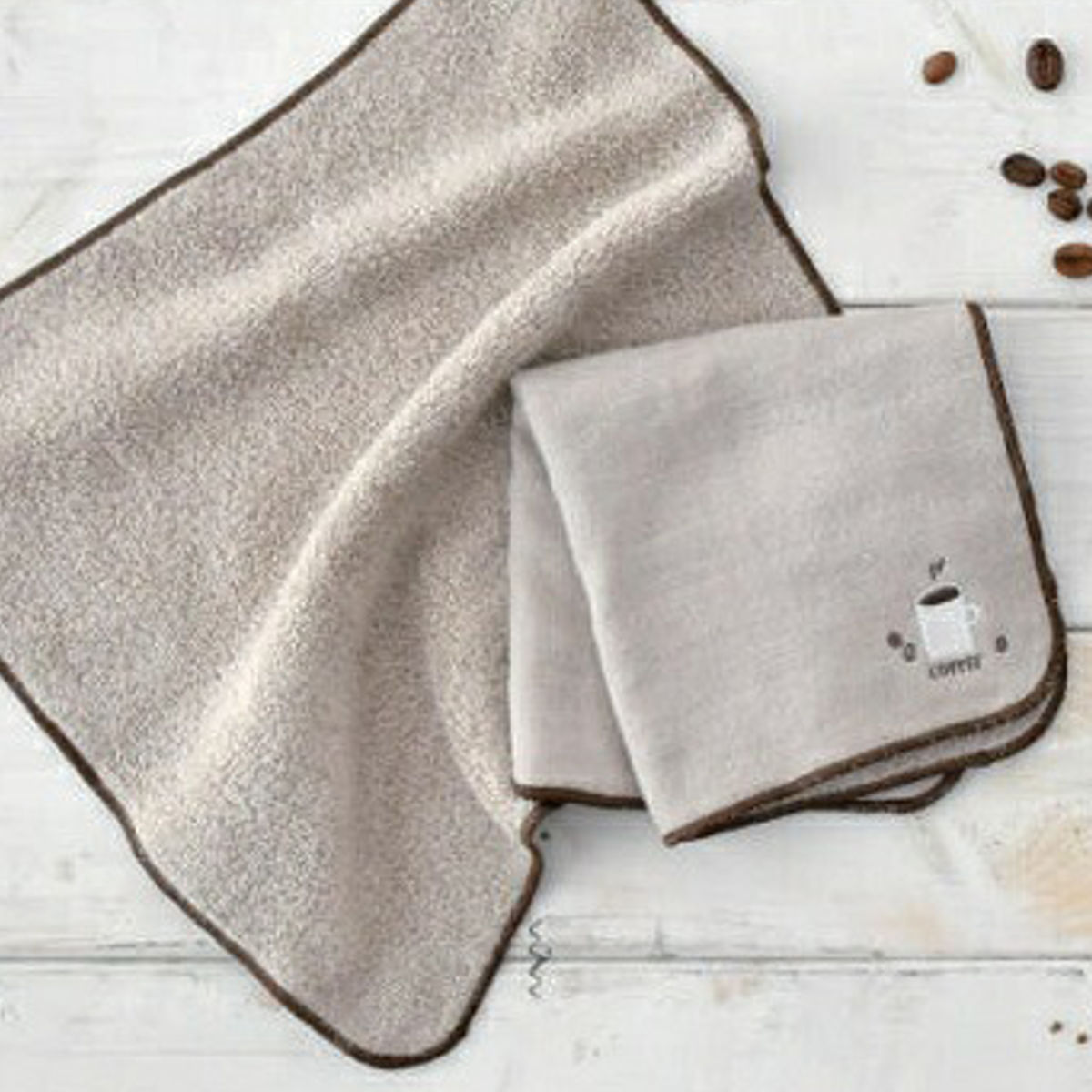 「このハンカチ、フードロス削減の手がかりかも。」本来なら廃棄されてしまうコーヒーを染料として再利用したエコなハンカチです。刺繍が入った上質なパイル&ガーゼハンカチに生まれ変わりました。安心の日本製です。