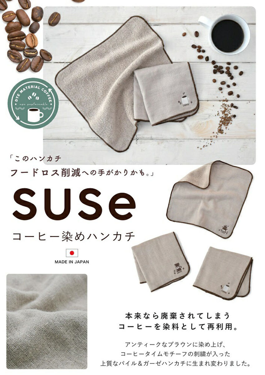 ●本来なら廃棄されてしまうコーヒーを染料として再利用し、パイル&ガーゼハンカチに生まれ変わりました。