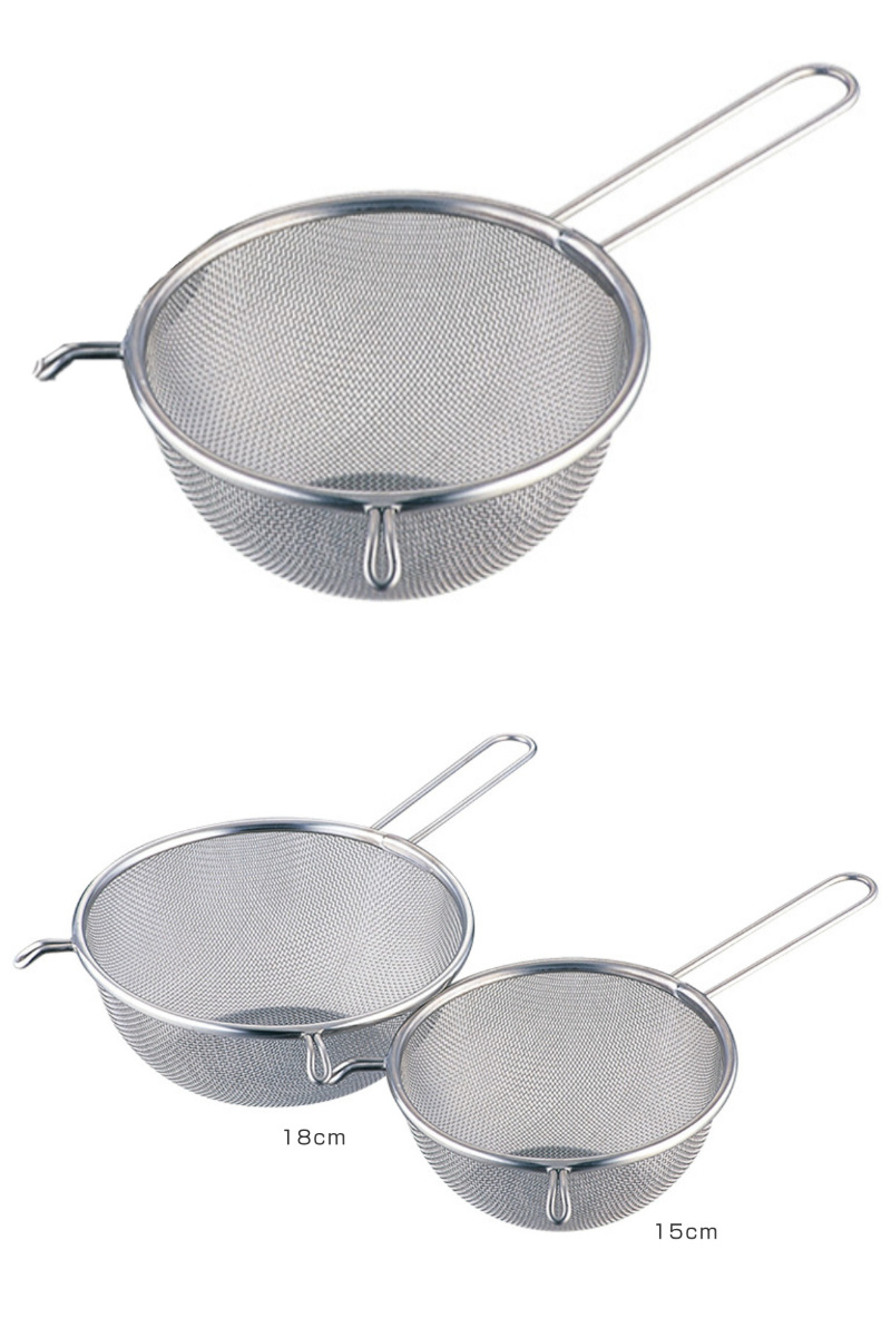 だしを漉したり、粉をふるったり、水切りをしたりと、お料理に欠かせない片手ざるです。フック付きなので、ボウルや鍋のふちに引っ掛けて使用できます。