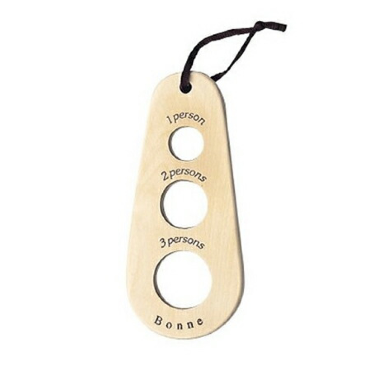穴にパスタを通すだけで、1人前から3人前まで簡単に計量できるパスタメジャーです。木ならではのあたたかみがあり、キッチンにやさしく馴染むデザインです。