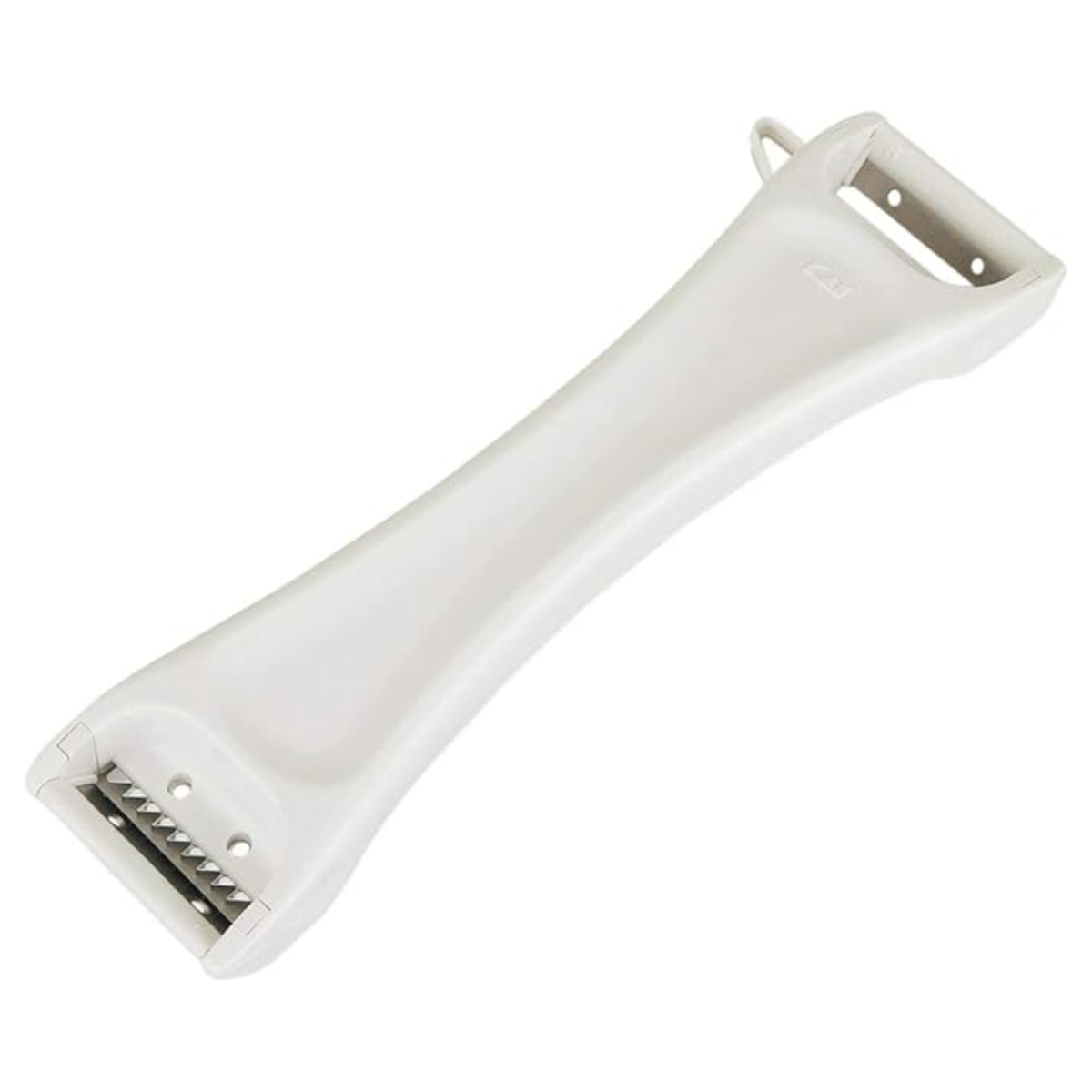 皮むき刃と千切り刃がひとつになった便利なピーラーです。野菜の皮むきはもちろん、大根やにんじんのツマづくりにも活躍します。じゃがいもの芽取り付きで下ごしらえがさらにスムーズに進みます。