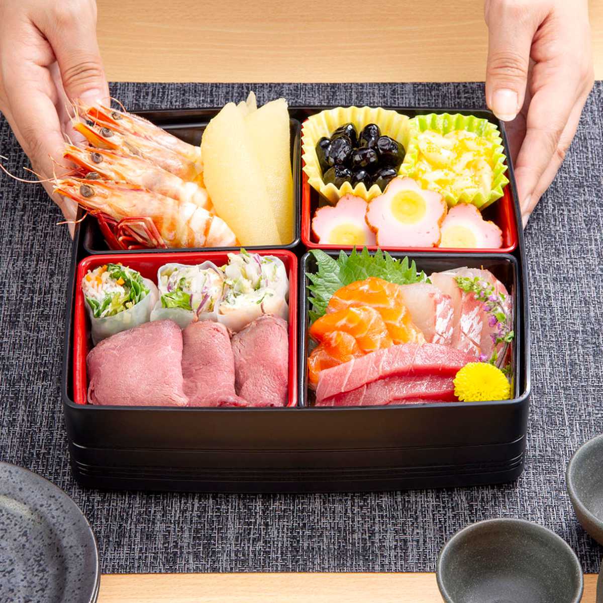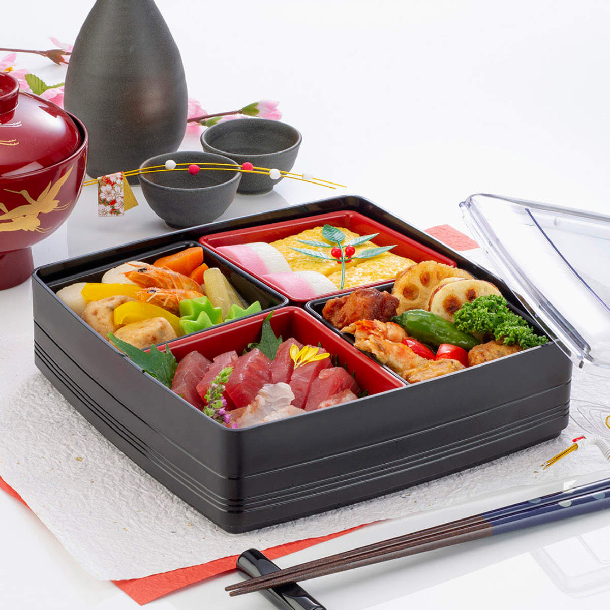 おせち料理やパーティー料理を華やかに彩るお重箱です。お料理をお重に詰めるだけでちょっと豪華な装いに。