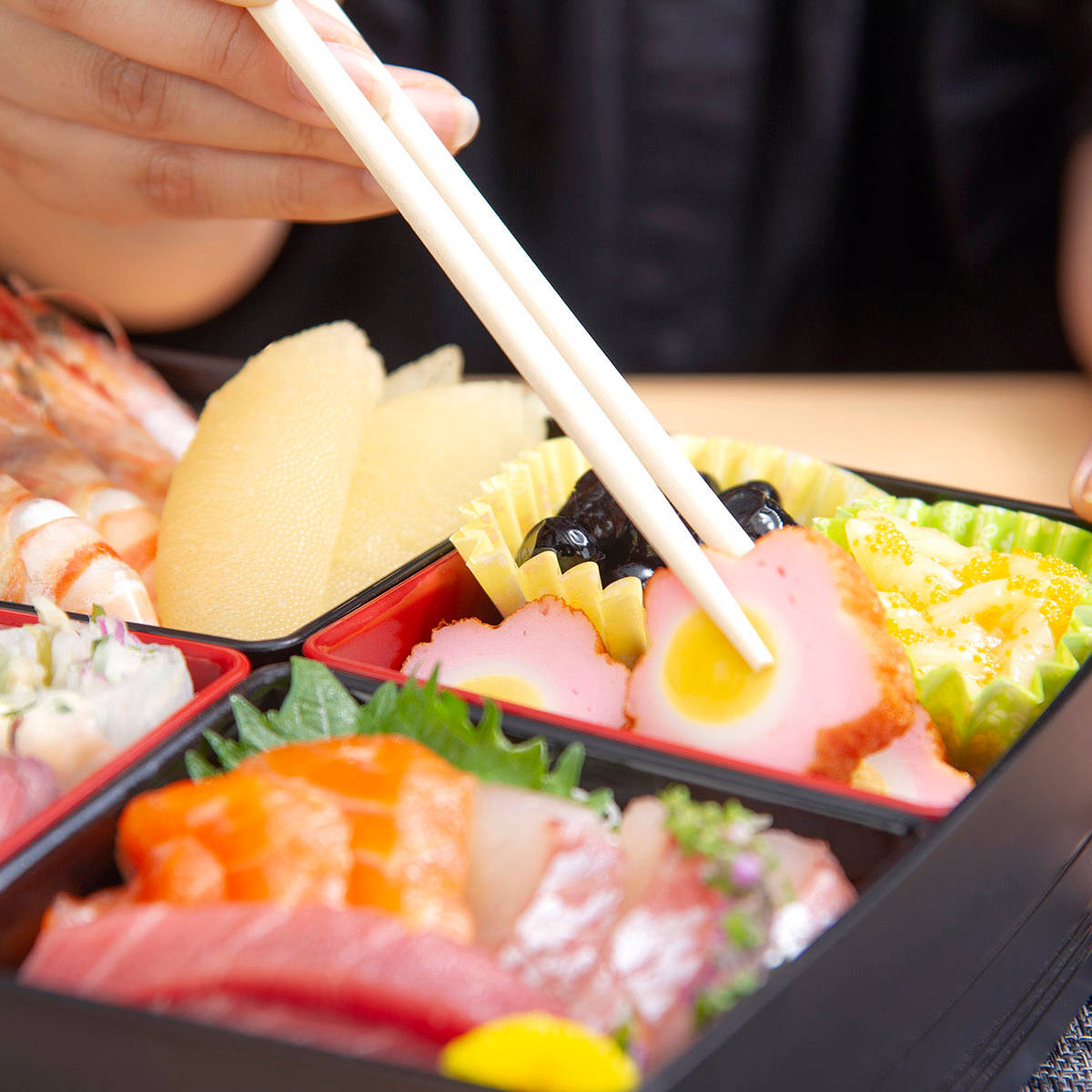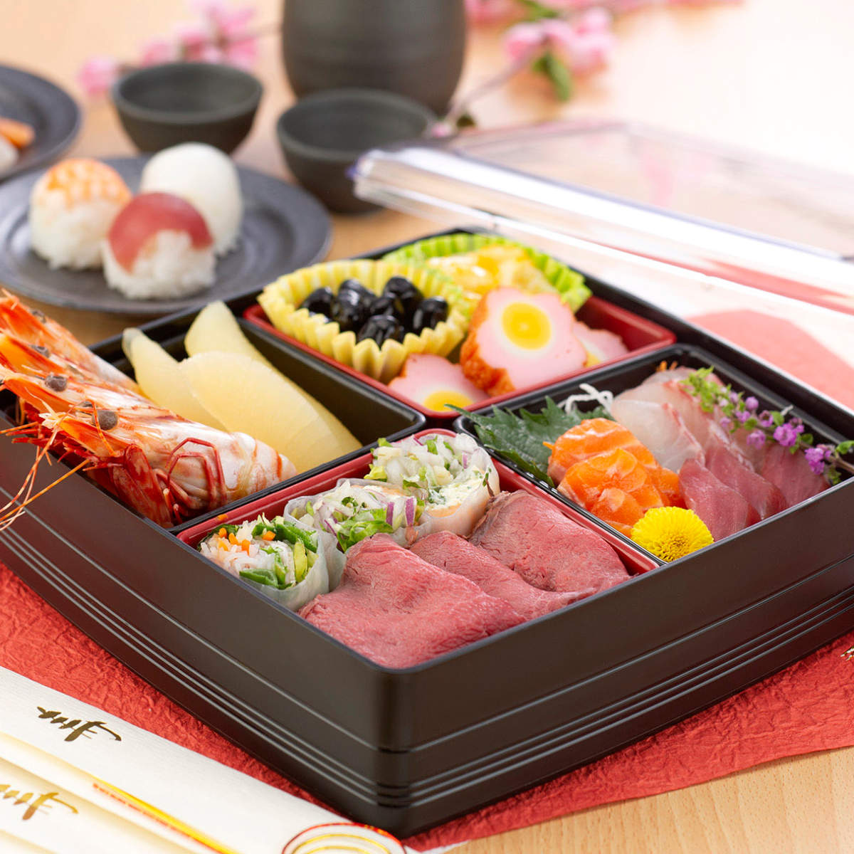 ●お料理をお重に詰めるだけでちょっと豪華な装いに。旬の食材やお好みのお料理を彩り豊かに演出します。