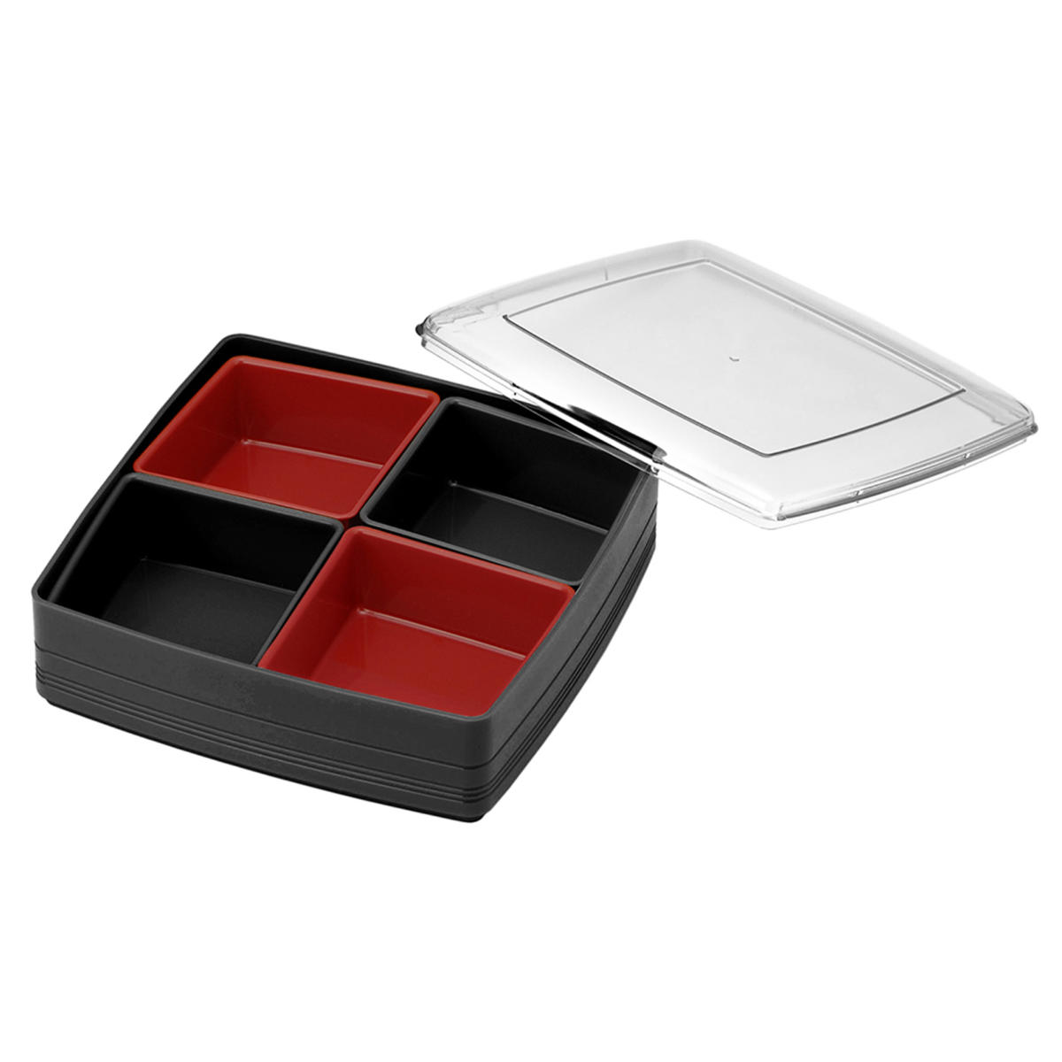 取り外し可能な小分け容器が4つ付いています。おかずを種類ごとに小分けして詰めるだけで見栄え良く仕上がります。