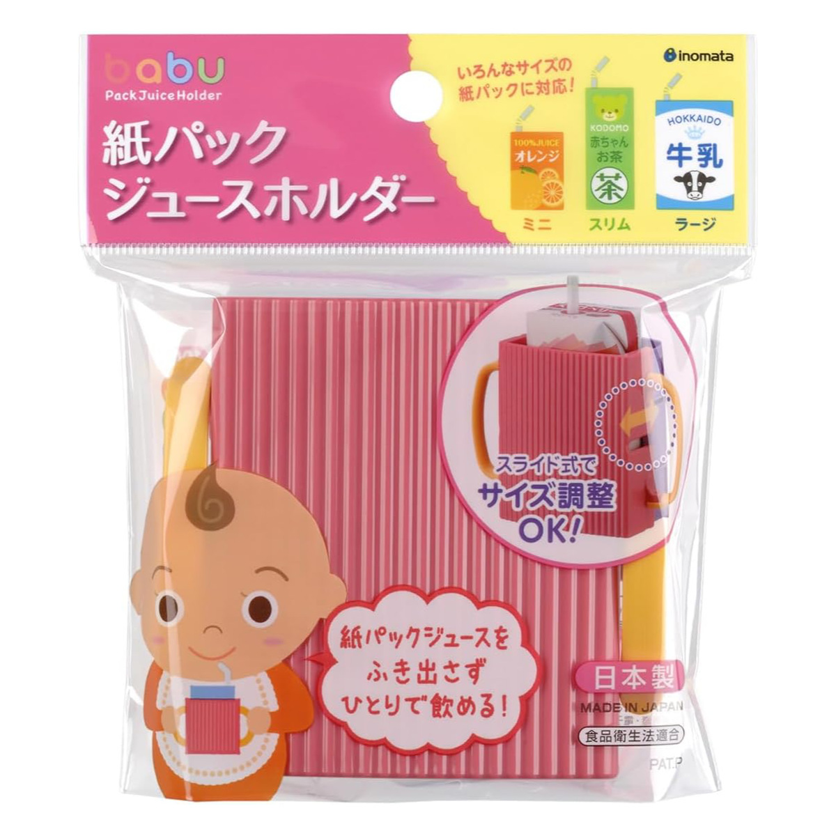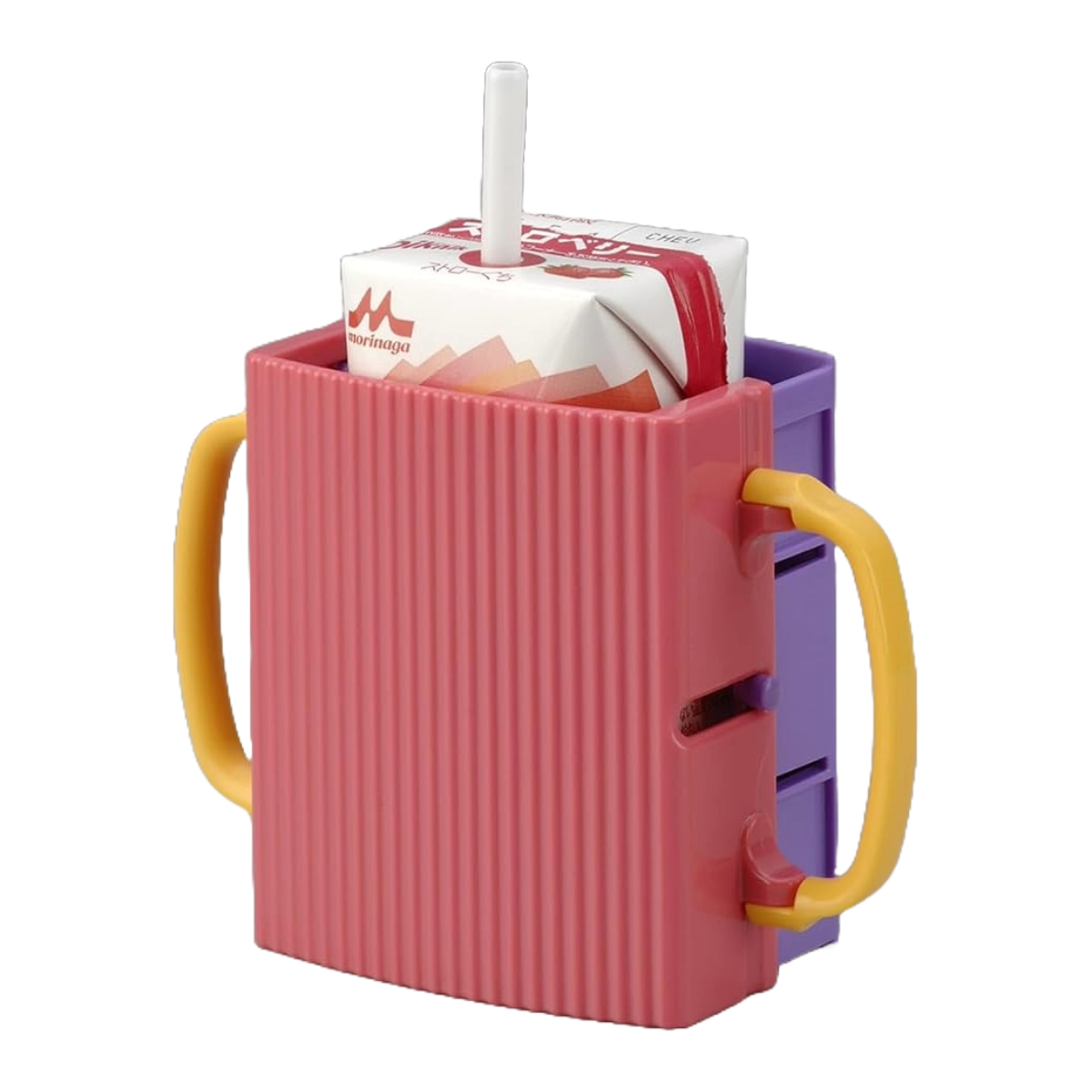 お子様が紙パックジュースを強く握って中身が飛び出してしまったり、お子様が一人で持つのにはパックが冷たくて持ちにくい…ミニ、スリム、ラージと紙パックのサイズがバラバラで対応できるホルダーがない、そんなお悩みを解決できる紙パック用ジュースホルダーです。