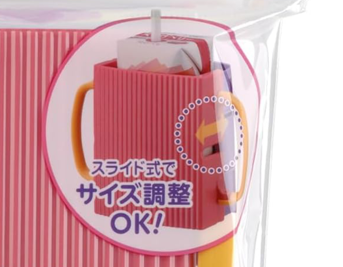 一般的なミニ(約100ml)、スリム、ラージ(約200ml)の3つのサイズに対応できるスライド式のデザインです。このホルダー1つで、様々なサイズの紙パックジュースや牛乳パックにご使用いただけます。お家でのおやつタイムや、車や電車でのお出かけ時、外食時に。ストローマグからのステップアップにオススメです。