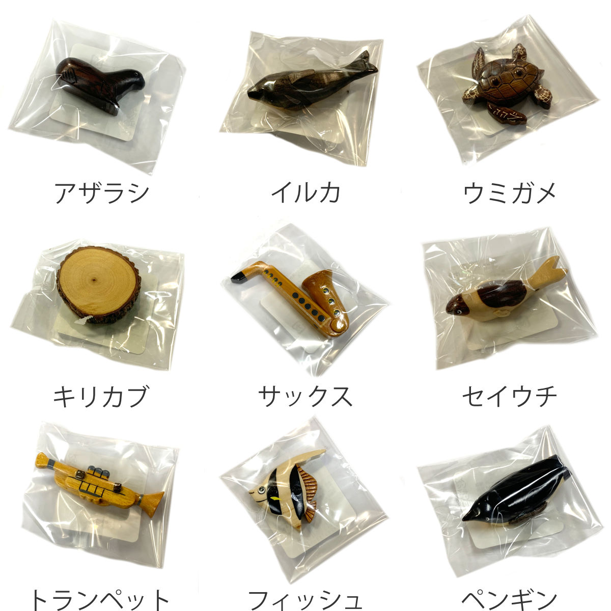 | サイズ | アザラシ:約 横2×縦4(cm) イルカ:約 横2×縦5.5(cm) ウミガメ:約 横4.5×縦4(cm) キリカブ:約 横3.5×縦3.5(cm) サックス:約 横4.5×縦6.5(cm) セイウチ:約 横2×縦5.5(cm) トランペット:約 横1.5×縦6(cm) トロピカルフィッシュ:約 横4.5×縦4(cm) ペンギン:約 横2.5×縦5.5(cm) |