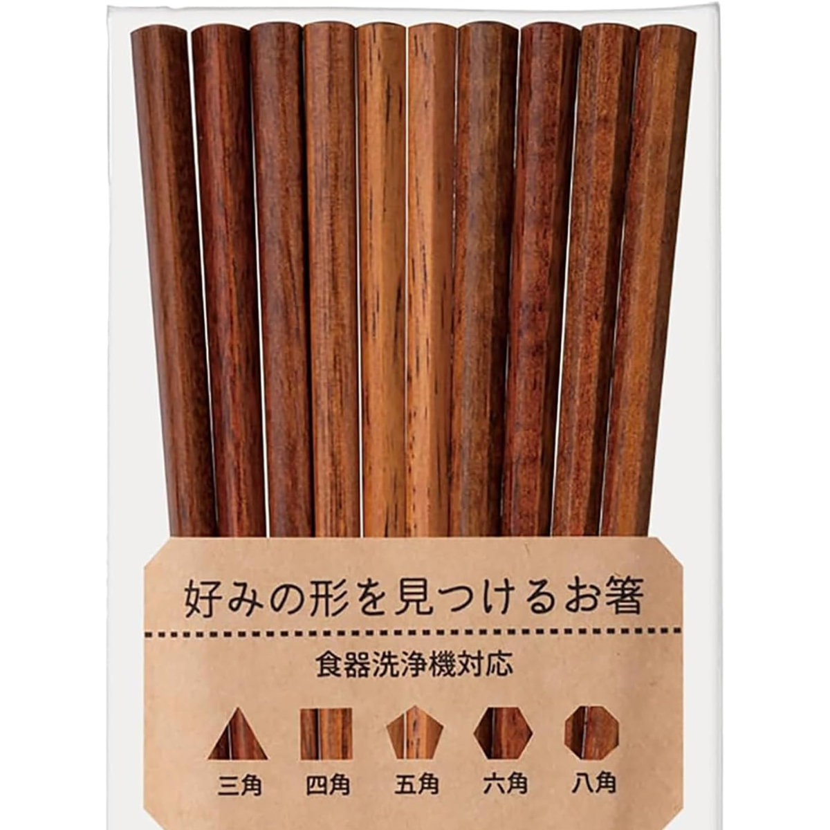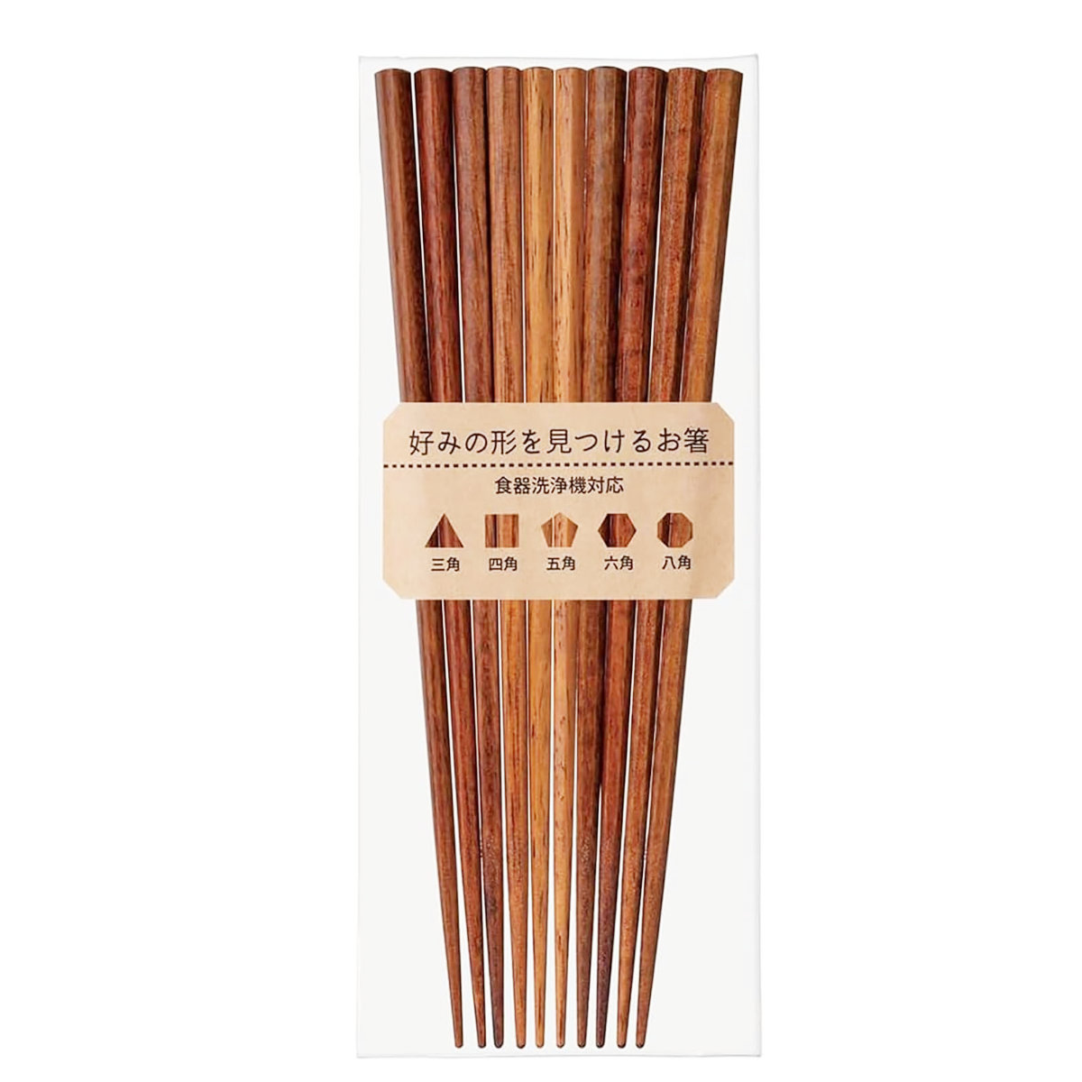 手にしっくりとなじむよう設計されたお箸の5膳セットです。三角から八角までありお気に入りのかたちがきっと見つかります。5膳入りなので来客用・おもてなし用として用意しておくと便利です。食洗機対応で普段使いに最適です。