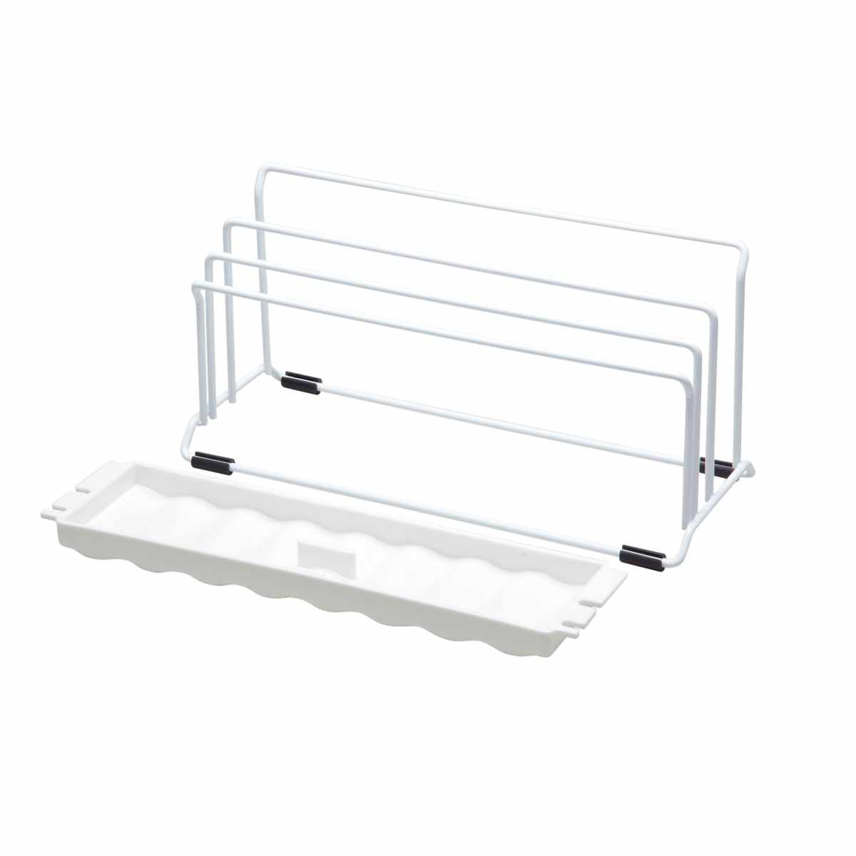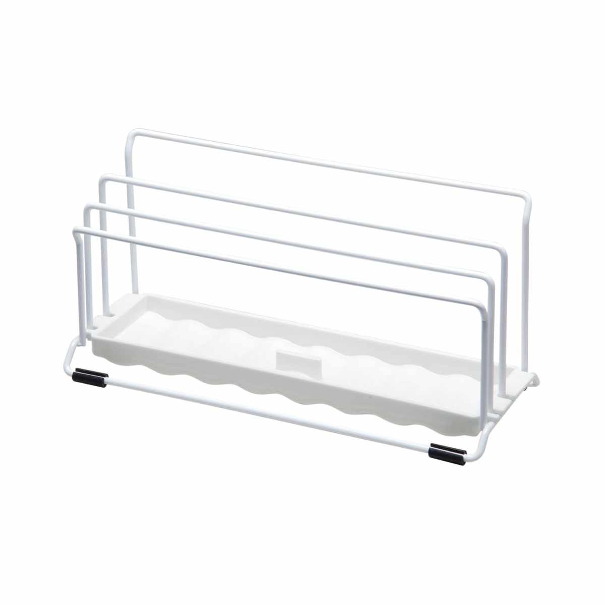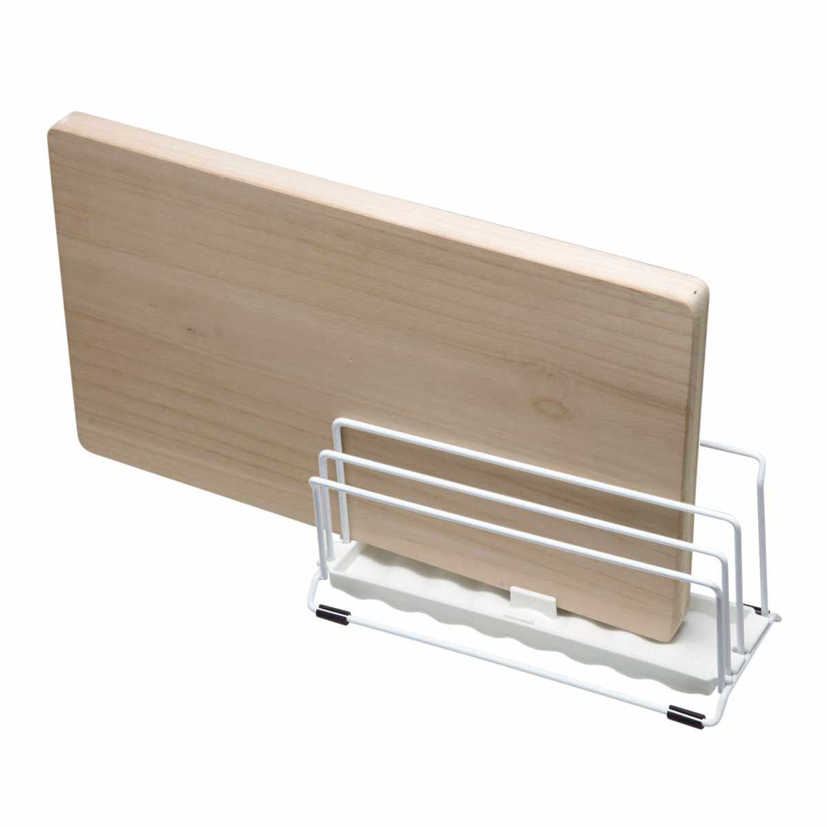 厚さ、サイズの違うまな板をスッキリ収納できるまな板スタンドです。差し込みやすいガイド付きで、まな板を3枚収納できます。