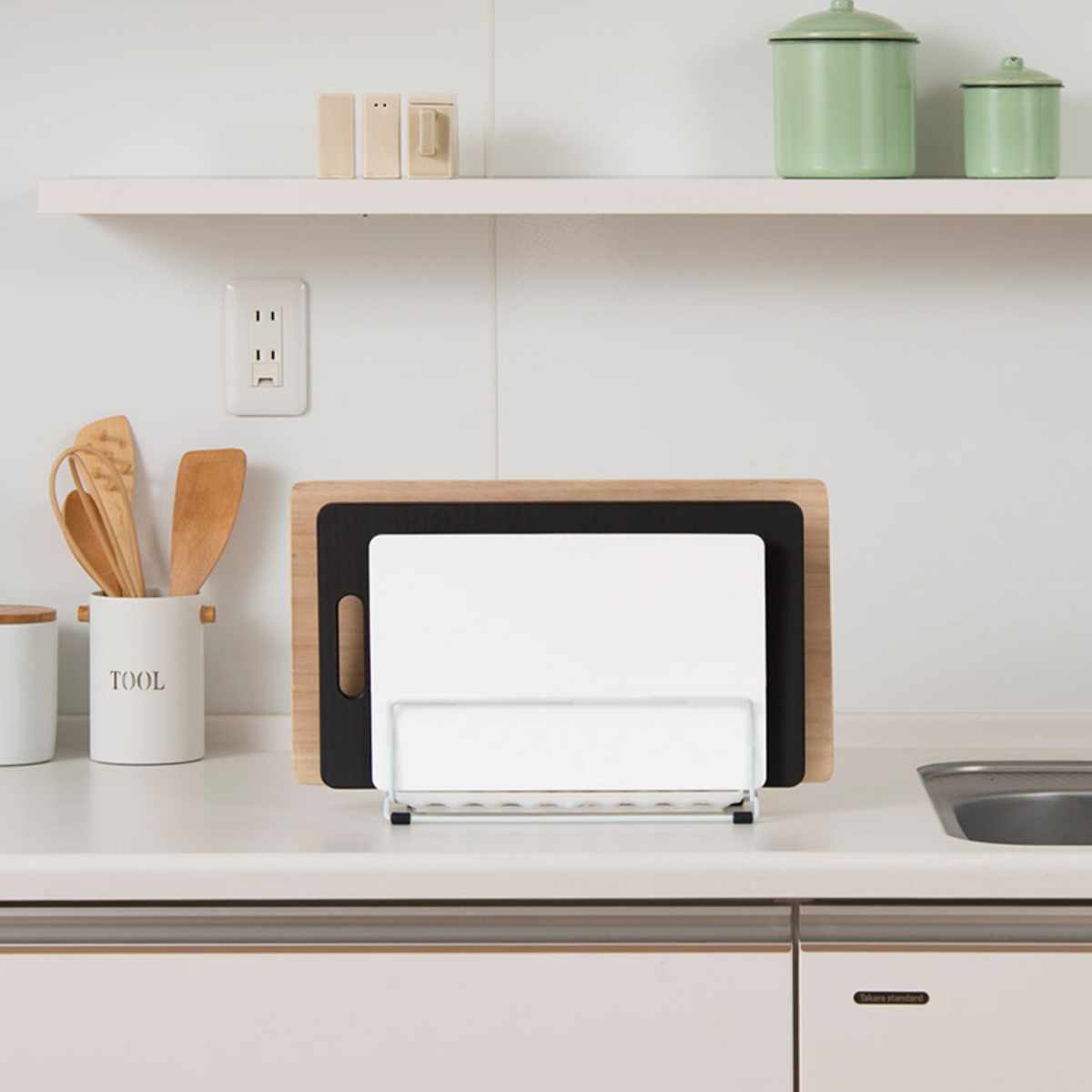 厚さ、サイズの違うまな板をスッキリ収納できるまな板スタンド
