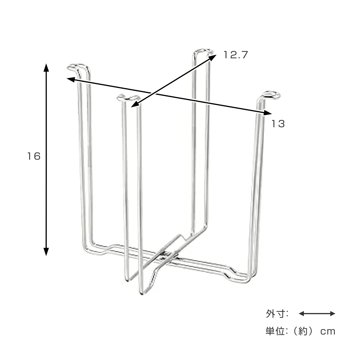 キッチンで大活躍するゴミ袋スタンドです。ポリ袋を掛けるだけで、調理中のゴミ入れとして使えます。チャック付き袋を設置すれば、袋調理の補助にも便利です。さらに、牛乳パックやペットボトル、グラスの水切りにも使える多用途なアイテムです。