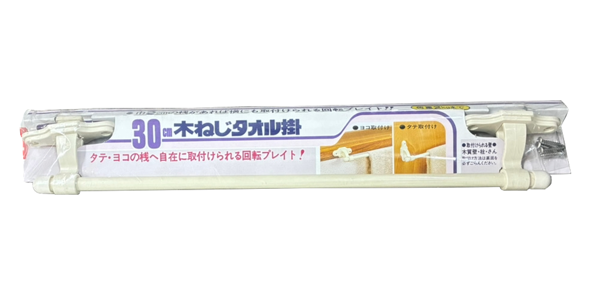 木ネジ止めタイプでしっかり固定するレトロなタオル掛け