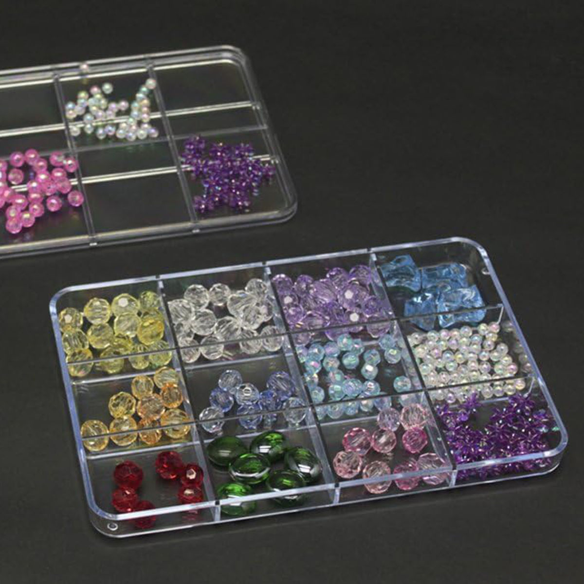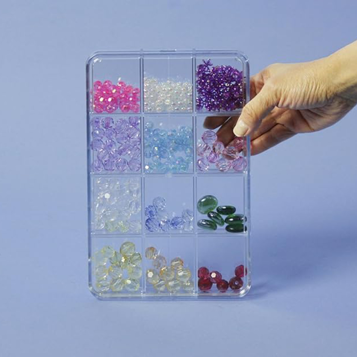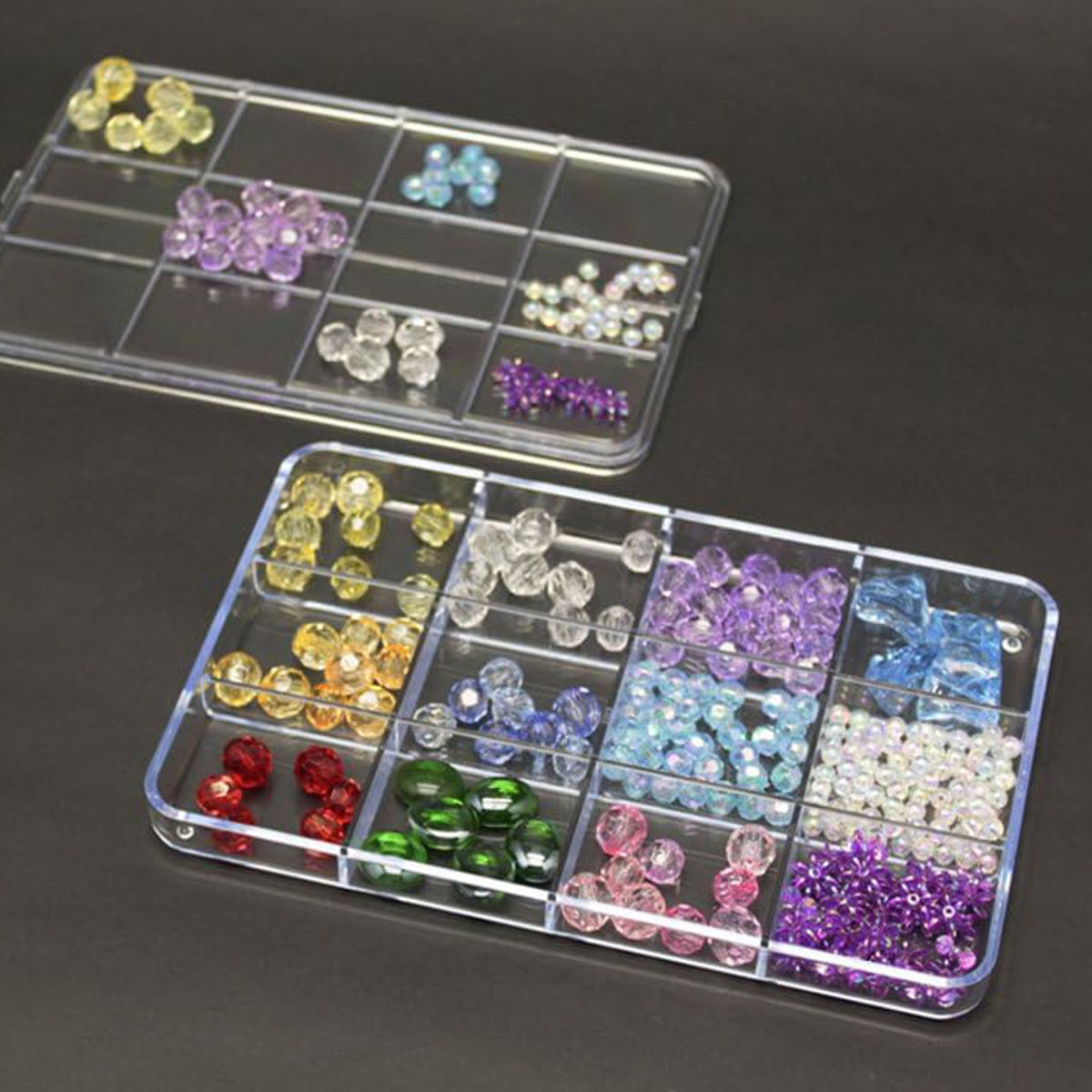 ●フタ付きでビーズやパーツの収納、管理にぴったりなケースです。