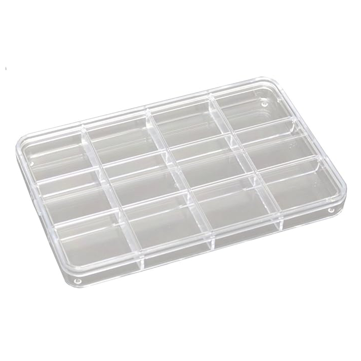 仕切りで12分割されています。フタも同じように分割されているので、作業中にビーズを出しておくお皿としても使えます。