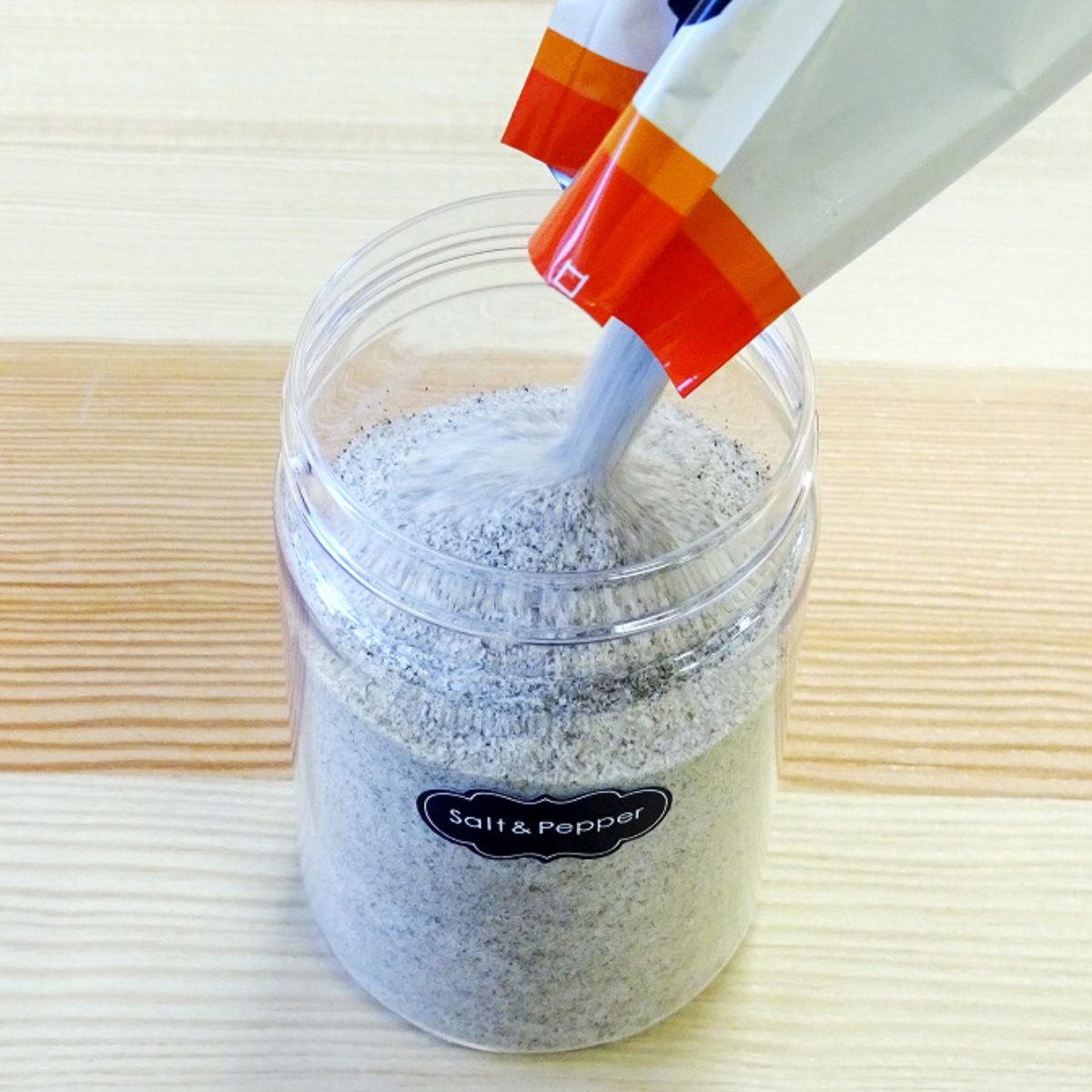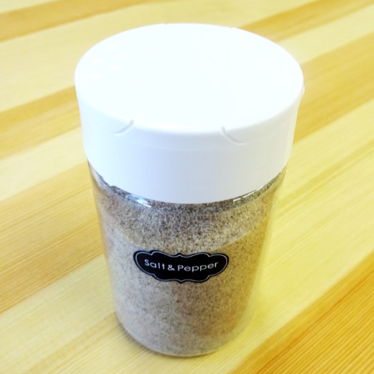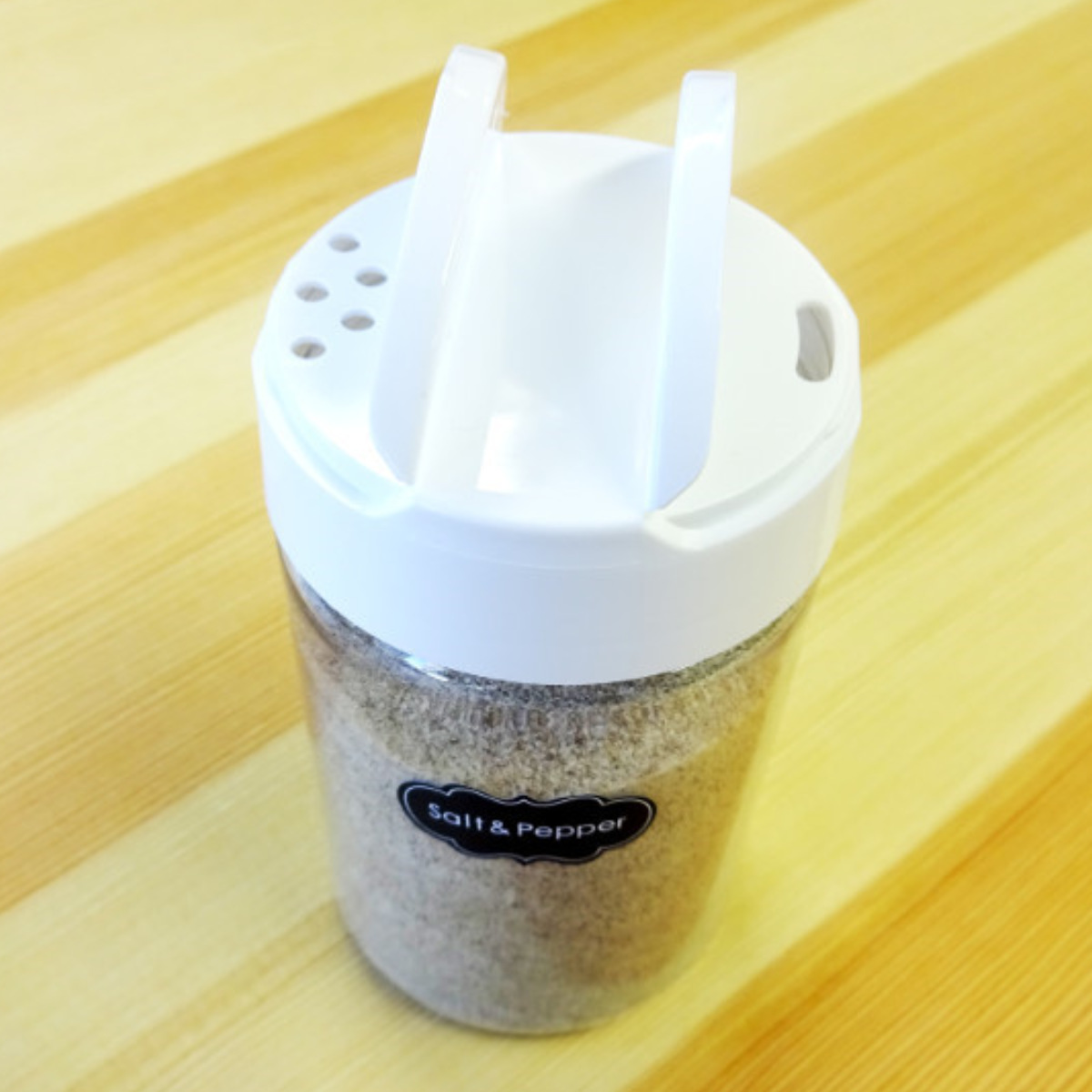 容器が透明なので、中身や残量がひと目で確認できます。味塩こしょう、塩こしょう、塩などの調味料に幅広く使えます。