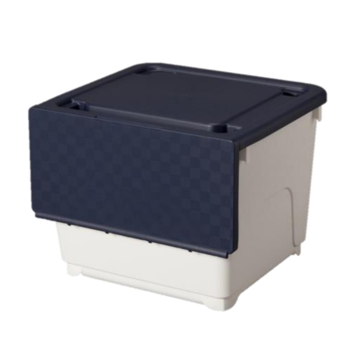 スタッキングできる収納ボックスです。前面にフタがあるので、重ねたままで簡単に出し入れできます。クローゼット内での衣類整理や洗面所でのタオルや小物入れにおすすめです。