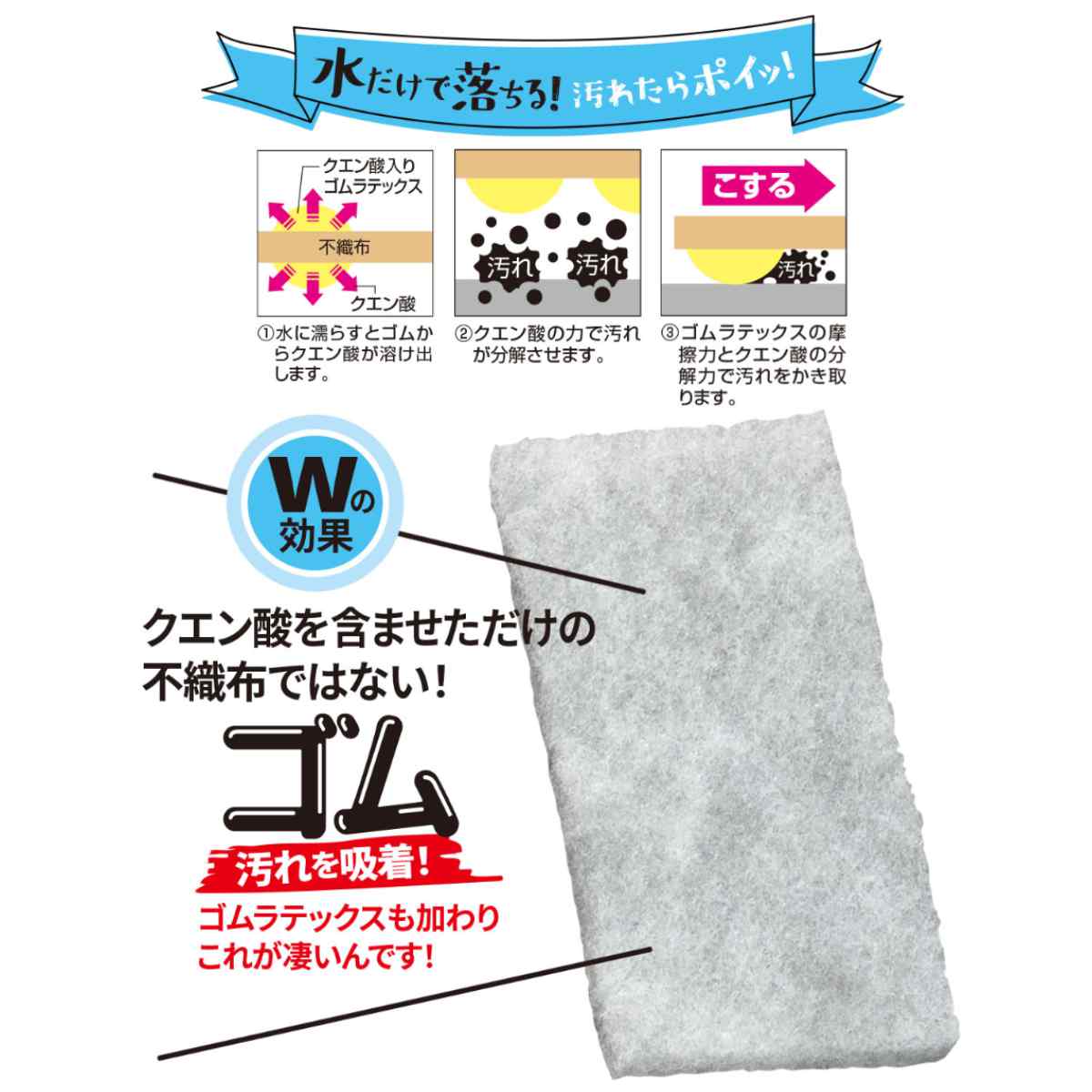 ●水を含ませるとクエン酸が溶け出し、汚れを分解させてしっかり落とします。