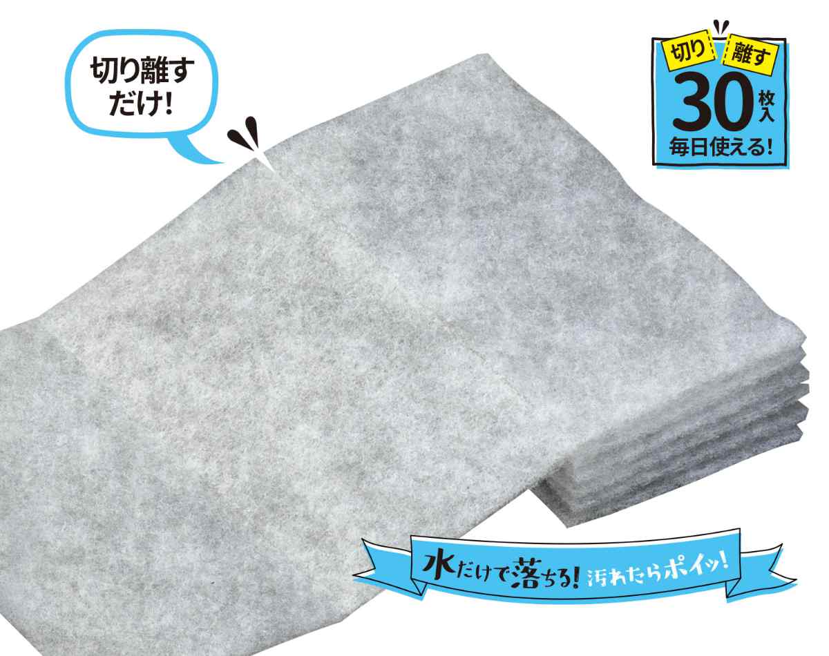 洗剤を使わずに水だけでキッチン周りの汚れを落とすクエン酸シートです。使い切りのクリーナーなので菌や汚れが付いたものは1日の終わりに捨て、衛生的なキッチンを保つことができます。