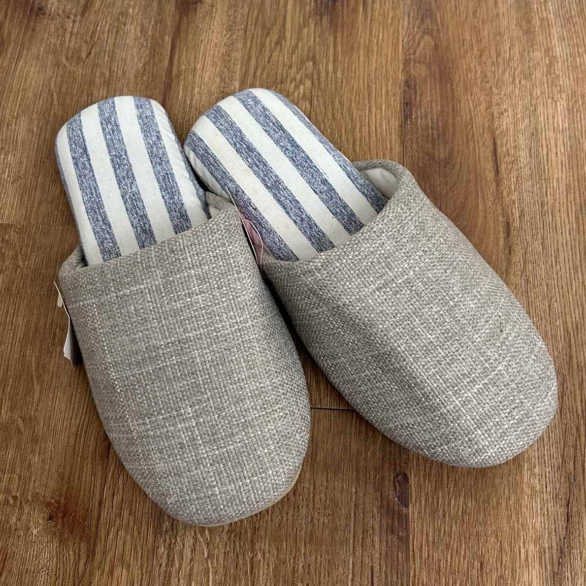 吸湿と消臭の2大効果で足の臭い悩みを解決してくれるスリッパです。ナチュラルな風合いのデザインで、やさしく足を包み込みます。