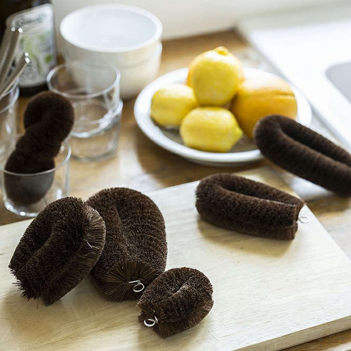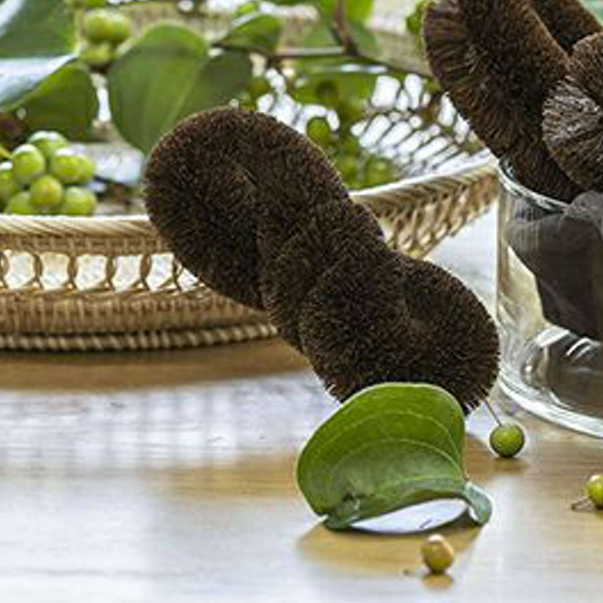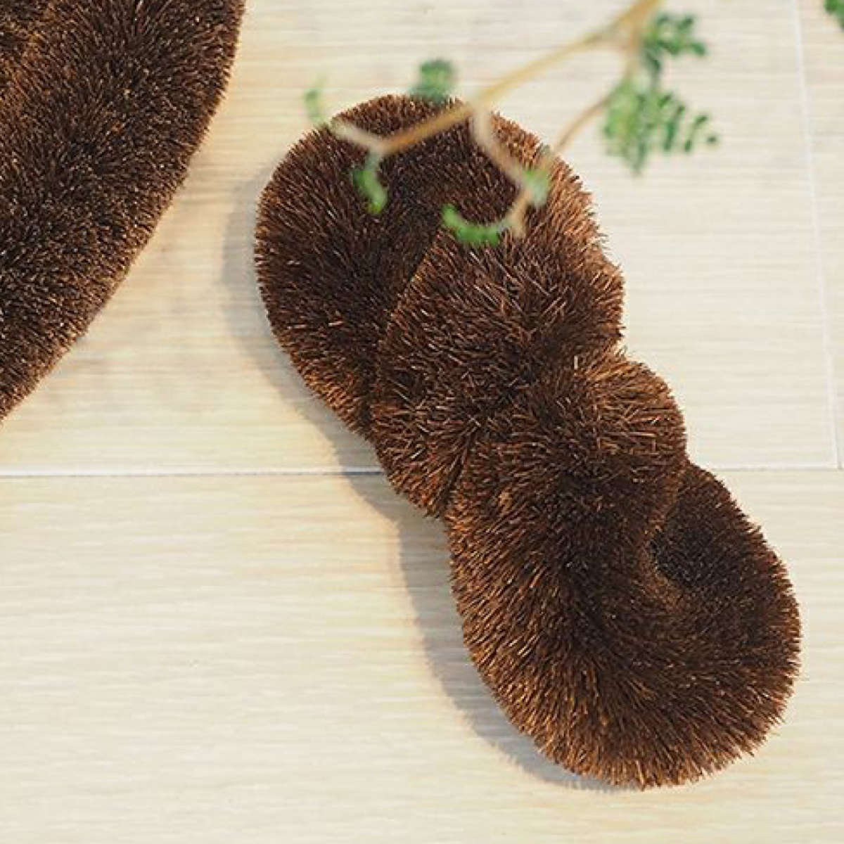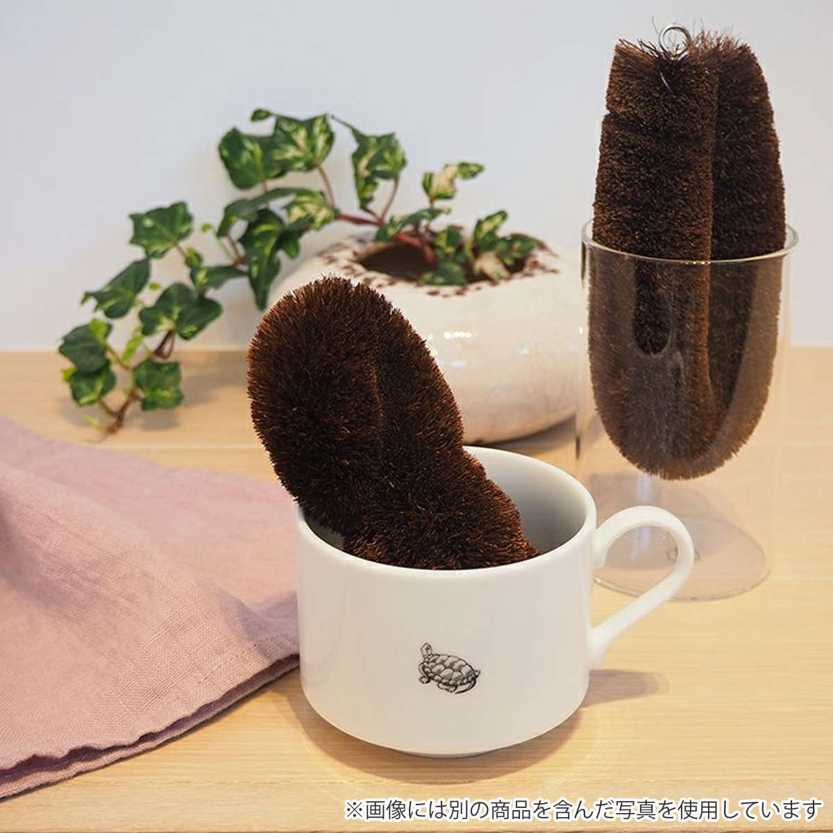 ガラスや陶器にも使える棕櫚たわしは、茶渋落としに最適です。ユニークな形状で、湯呑やマグカップの洗浄にも便利です。