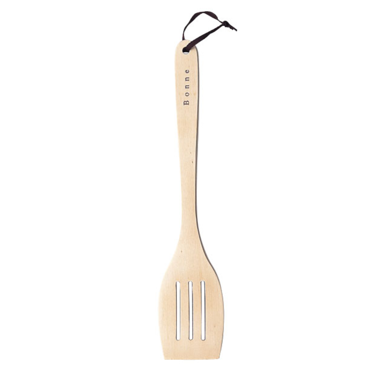 炒め物に使ったり、食材をやさしく混ぜ合わせたりと、幅広く活躍する木製ヘラです。木ならではのあたたかみがあり、キッチンにやさしく馴染むデザインです。