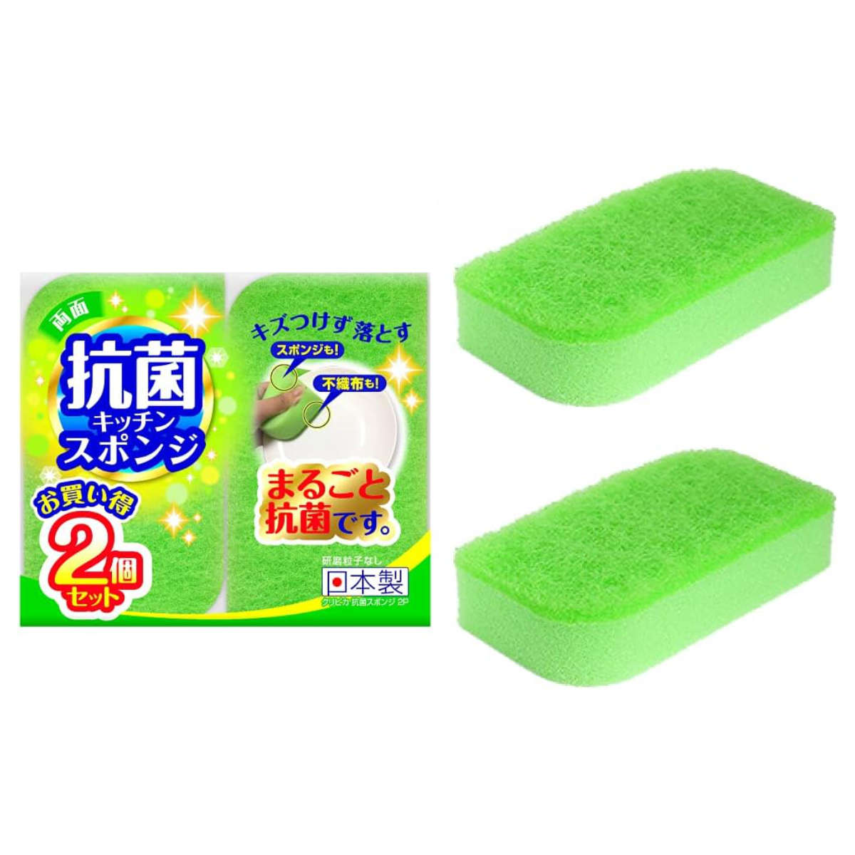 泡立ちが良く水切れもスムーズ 抗菌スポンジ2個入