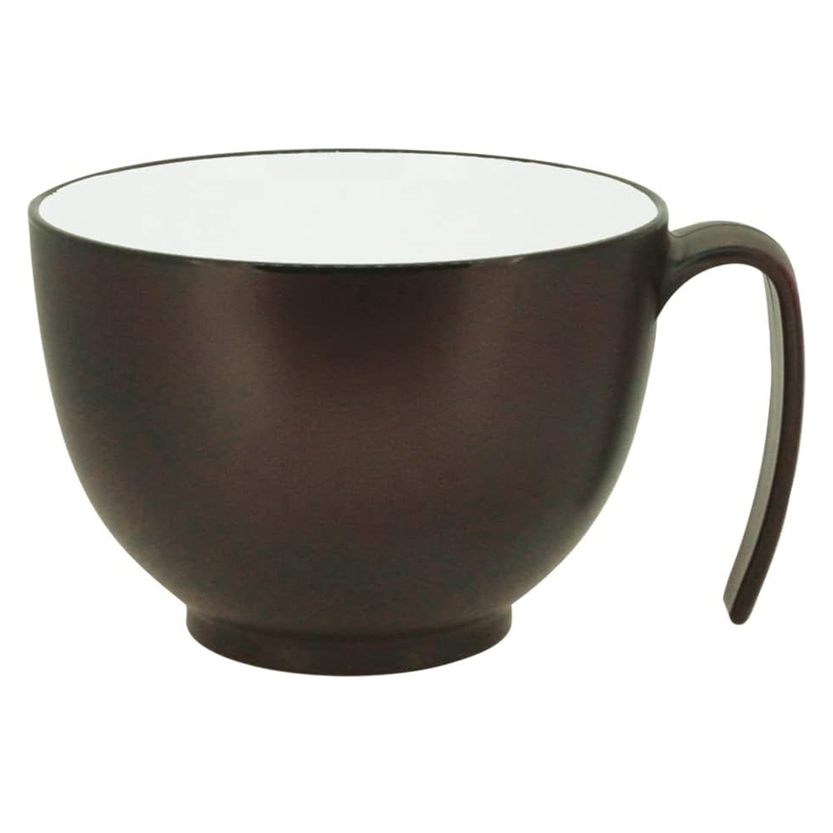 あたたかみのある木目調のどんぶりです。太めのハンドルに手を差し込みやすく、軽い力でもしっかり持てるため、食事中の安定感を高めます。落としても割れにくい樹脂製のため、毎日の食事介助にも扱いやすいアイテムです。