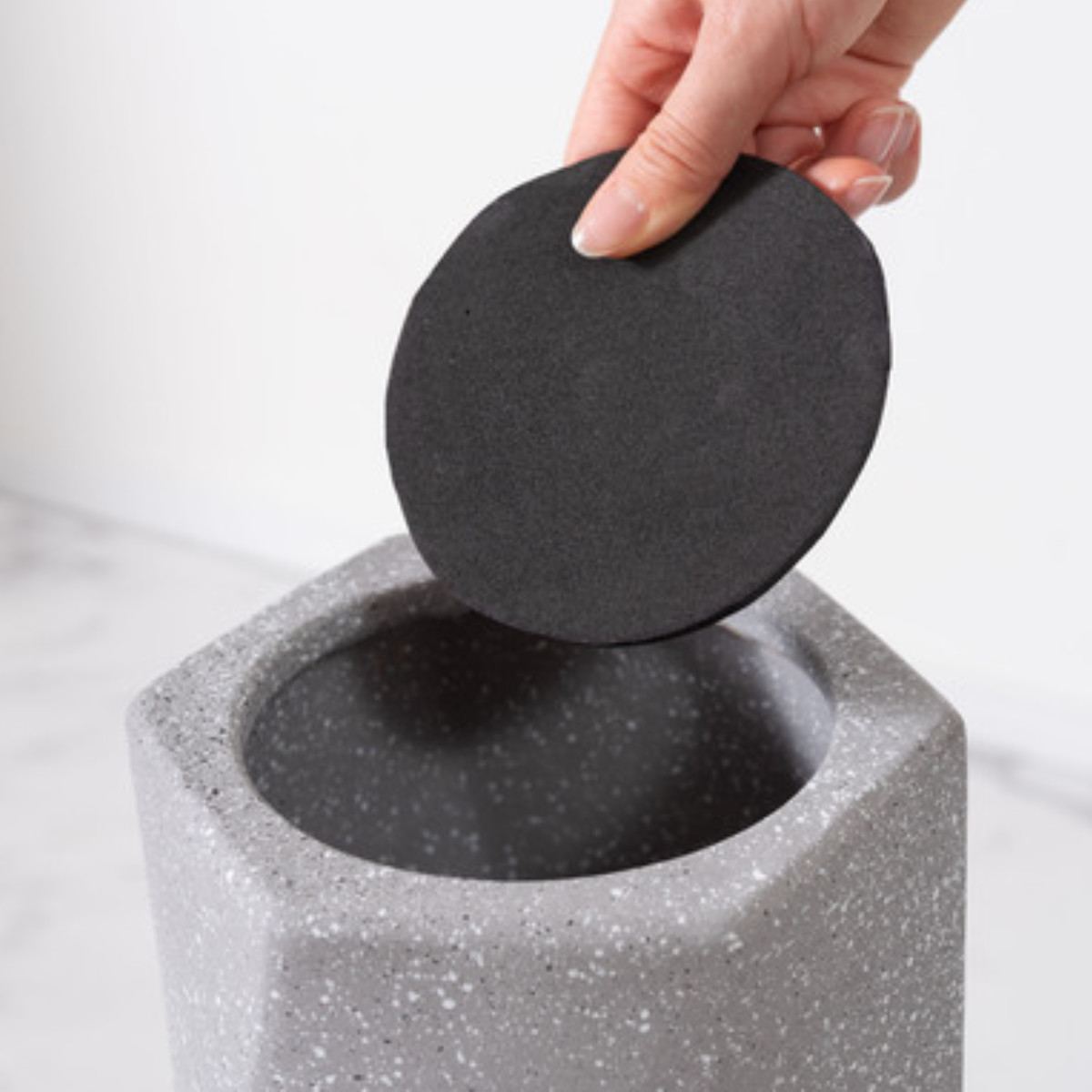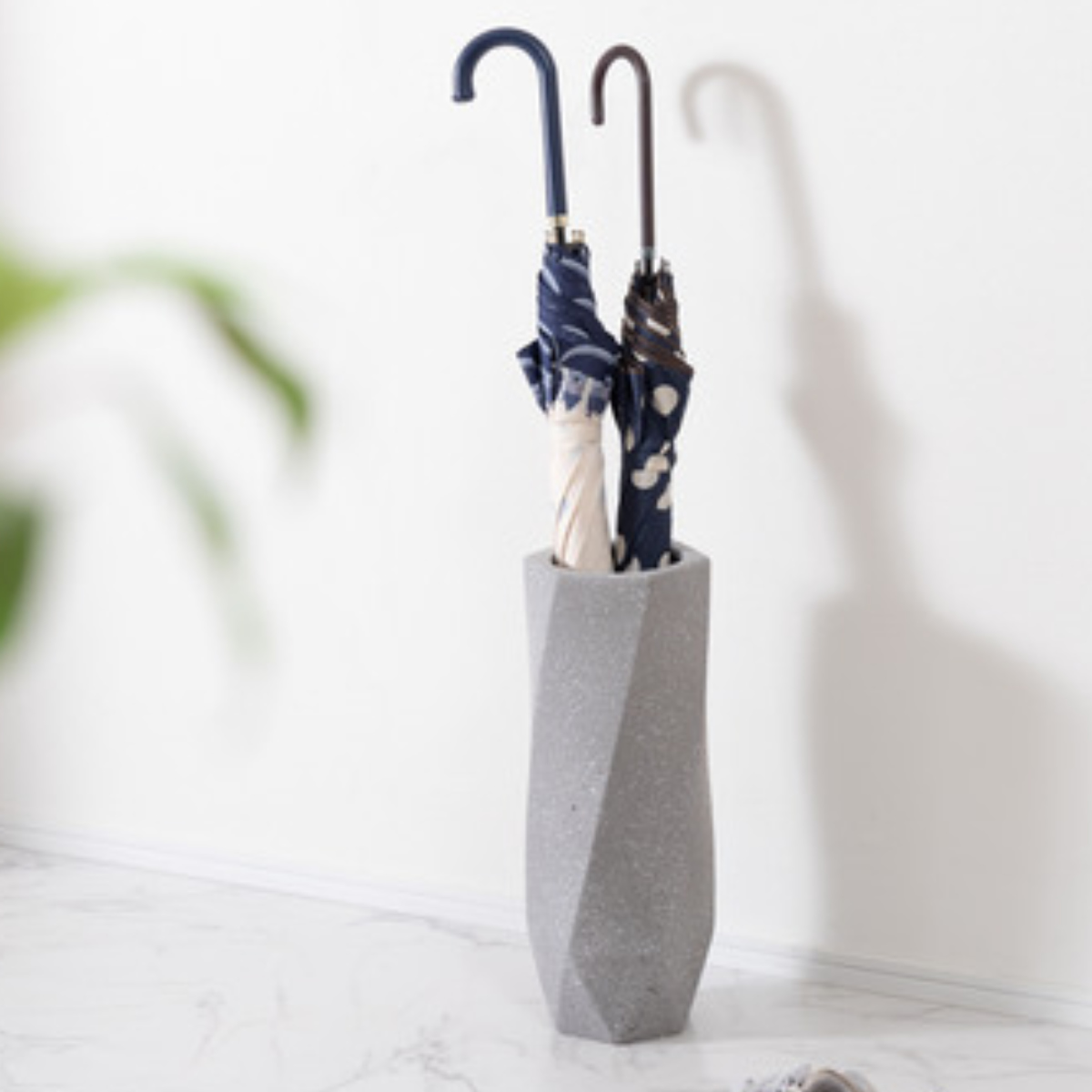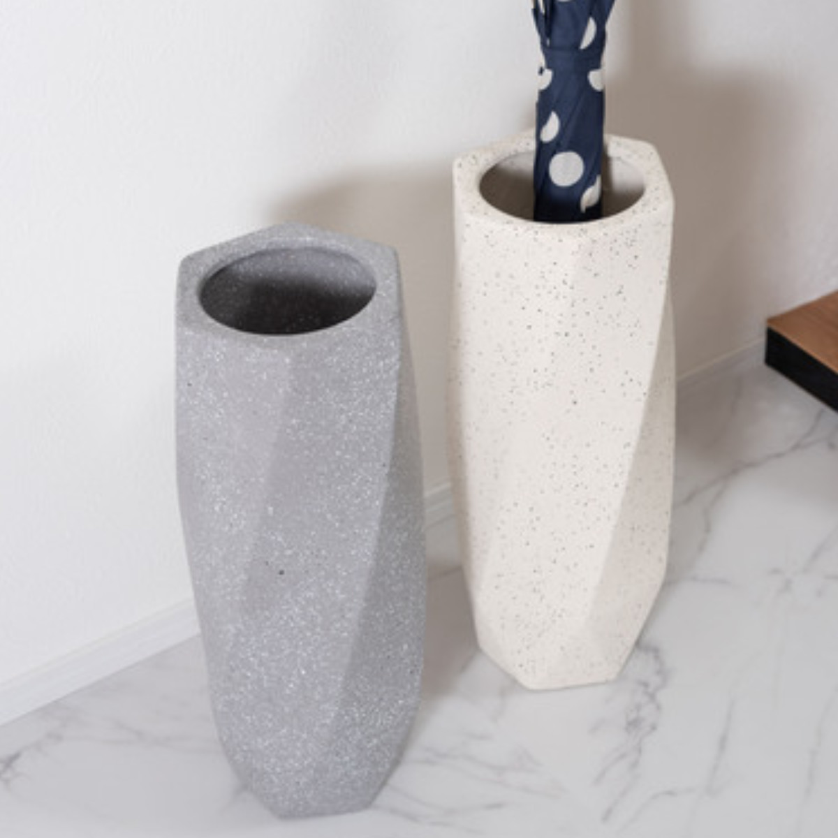 玄関の限られたスペースにも置きやすい、スリムな傘立て。マットな質感の石目調とねじるような形状が美しく、テイストを問わず合わせやすいデザイン性の高さがポイントです。