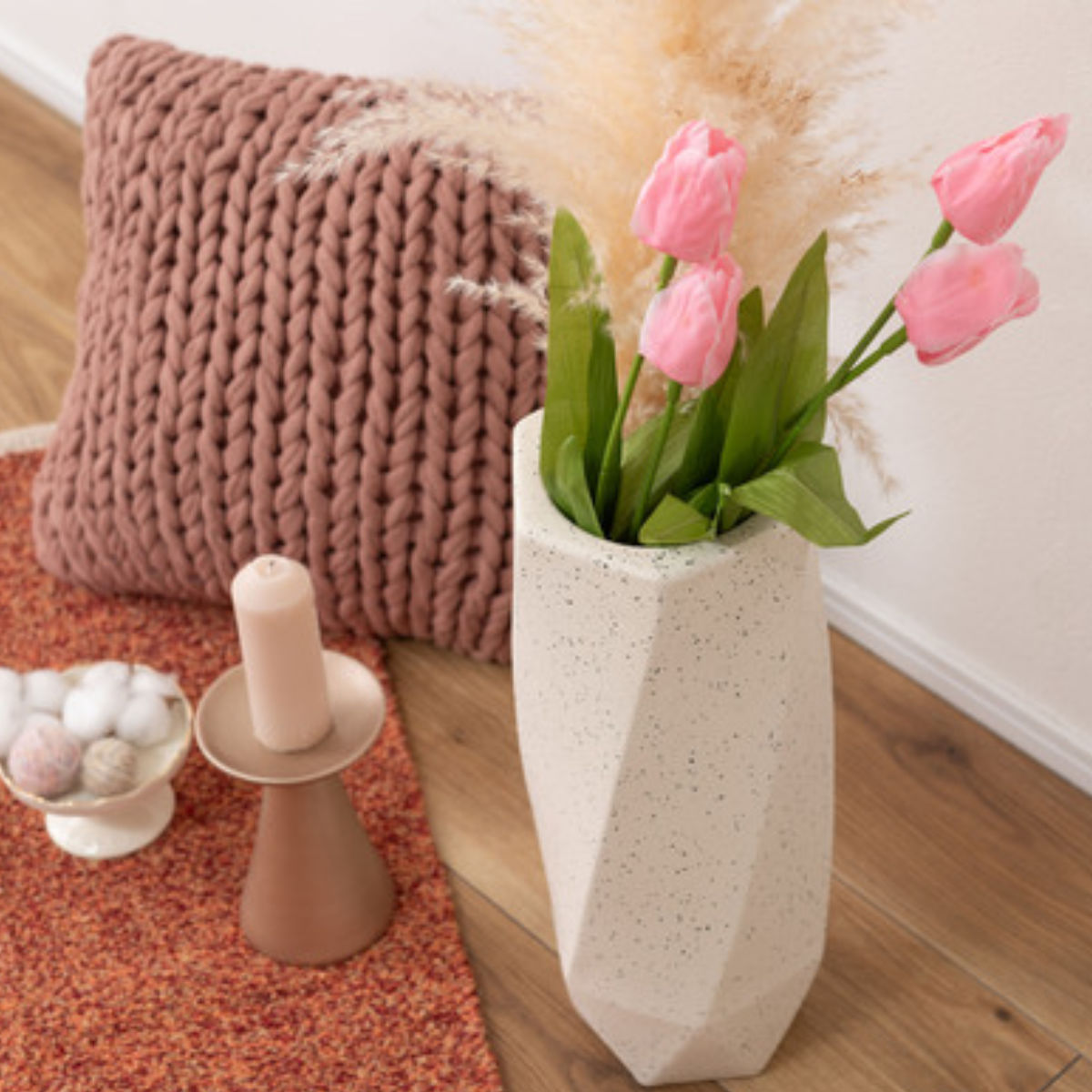 陶器ならではの質感とスリムなシルエットが置いているだけでも洗練された雰囲気に。花やグリーンを引き立てるフラワーベースとしてもぴったりで、玄関やお部屋にちょっとした彩りを添えることができます。