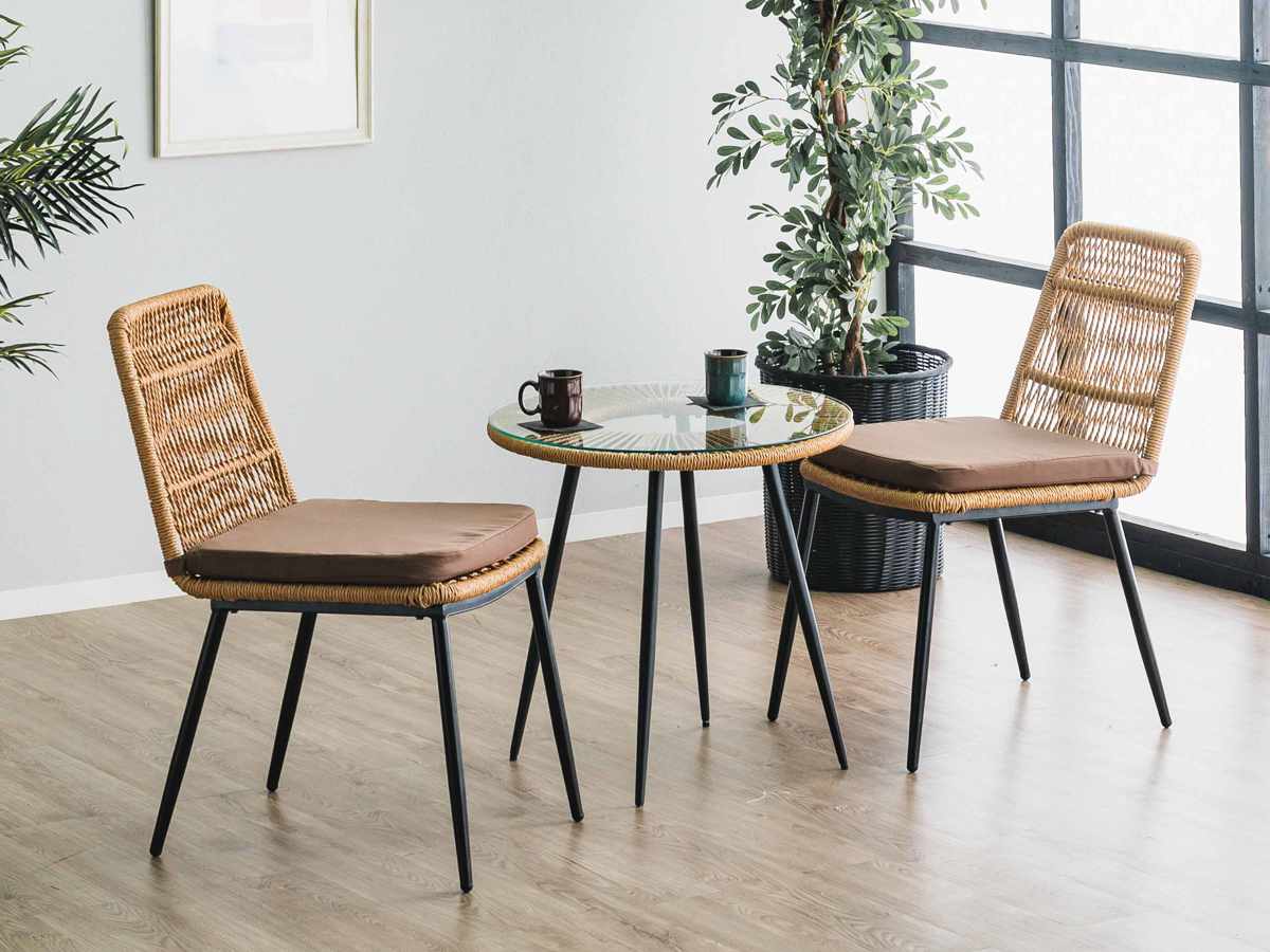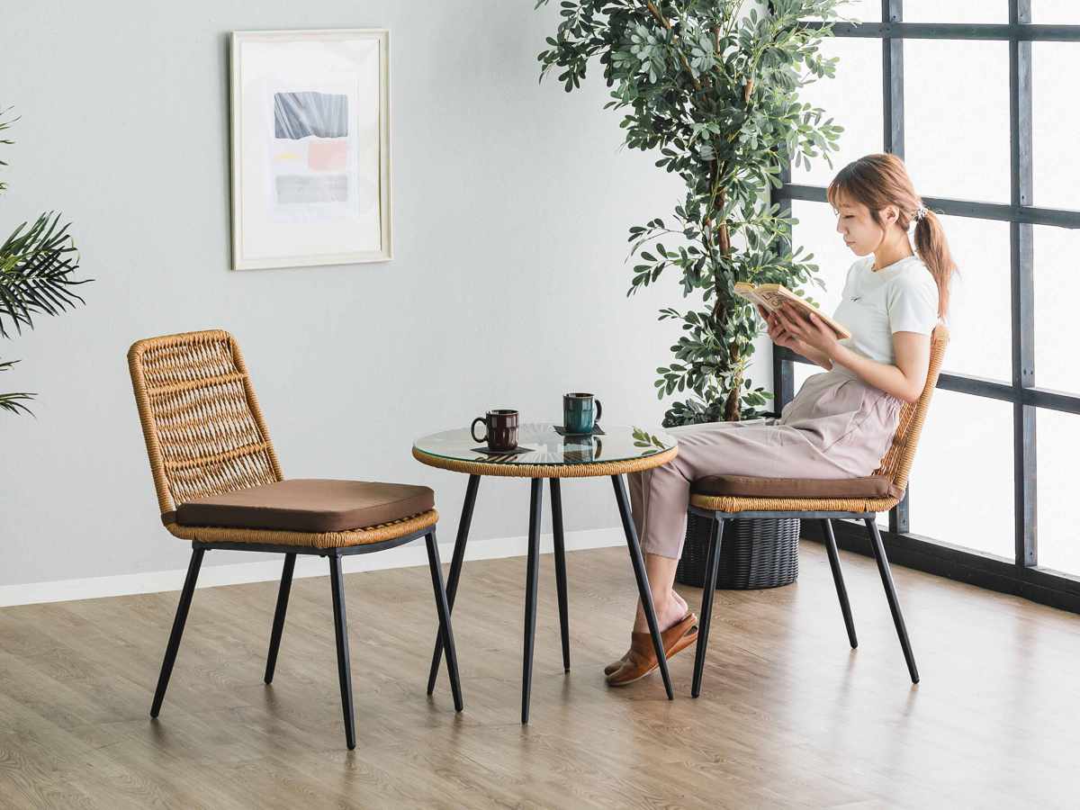 耐久性が高く、水や汚れに強いポリエチレン製の人工ラタンを使用。お手入れがしやすく、長くお使いいただけます。また、天然ラタンのようなささくれやめくれが出にくいため、小さなお子様のいるご家庭でも安心です。