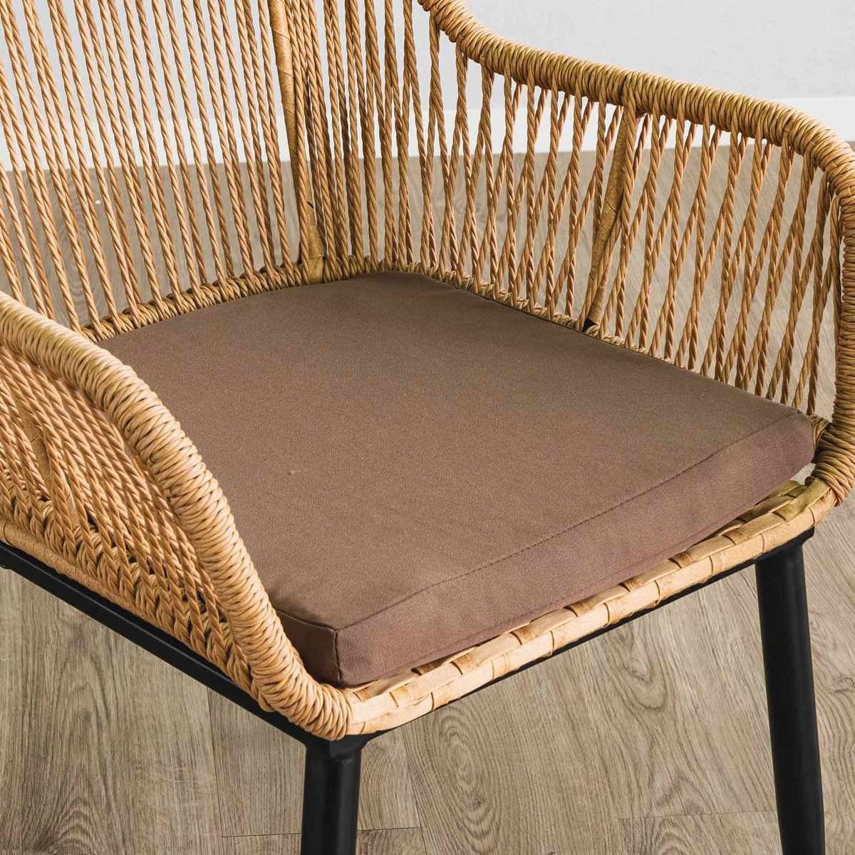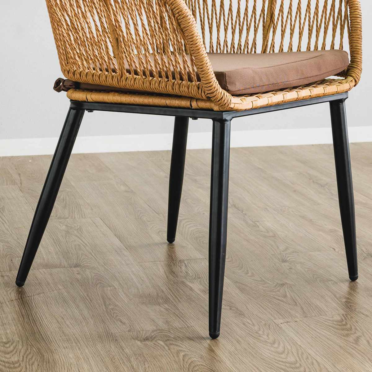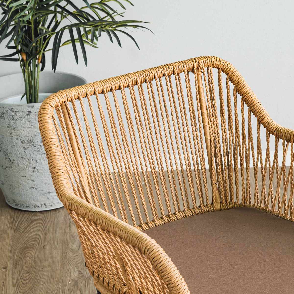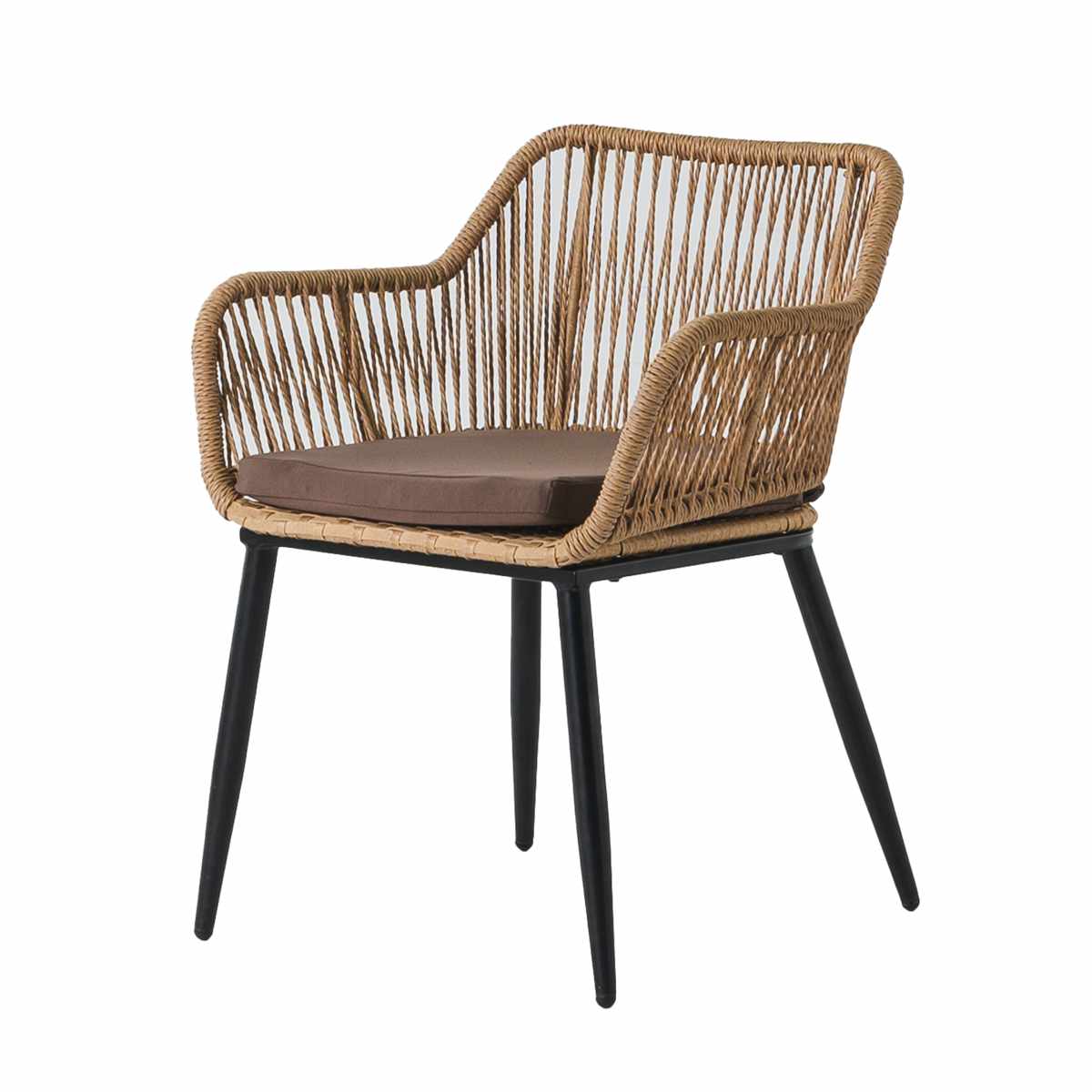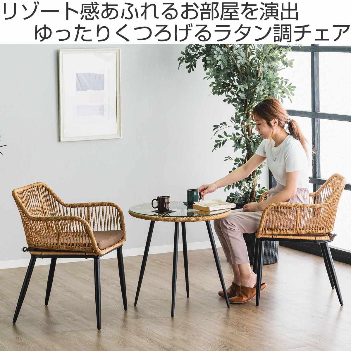 リゾートチェア ラタン調 マーレ ( 椅子 ダイニングチェア クッション付き 肘掛け 腰かけ 籐 人工ラタン 軽量 チェアー イス いす 食卓椅子 リビングチェア 書斎 スチール脚 おしゃれ ナチュラル インテリア 室内 )