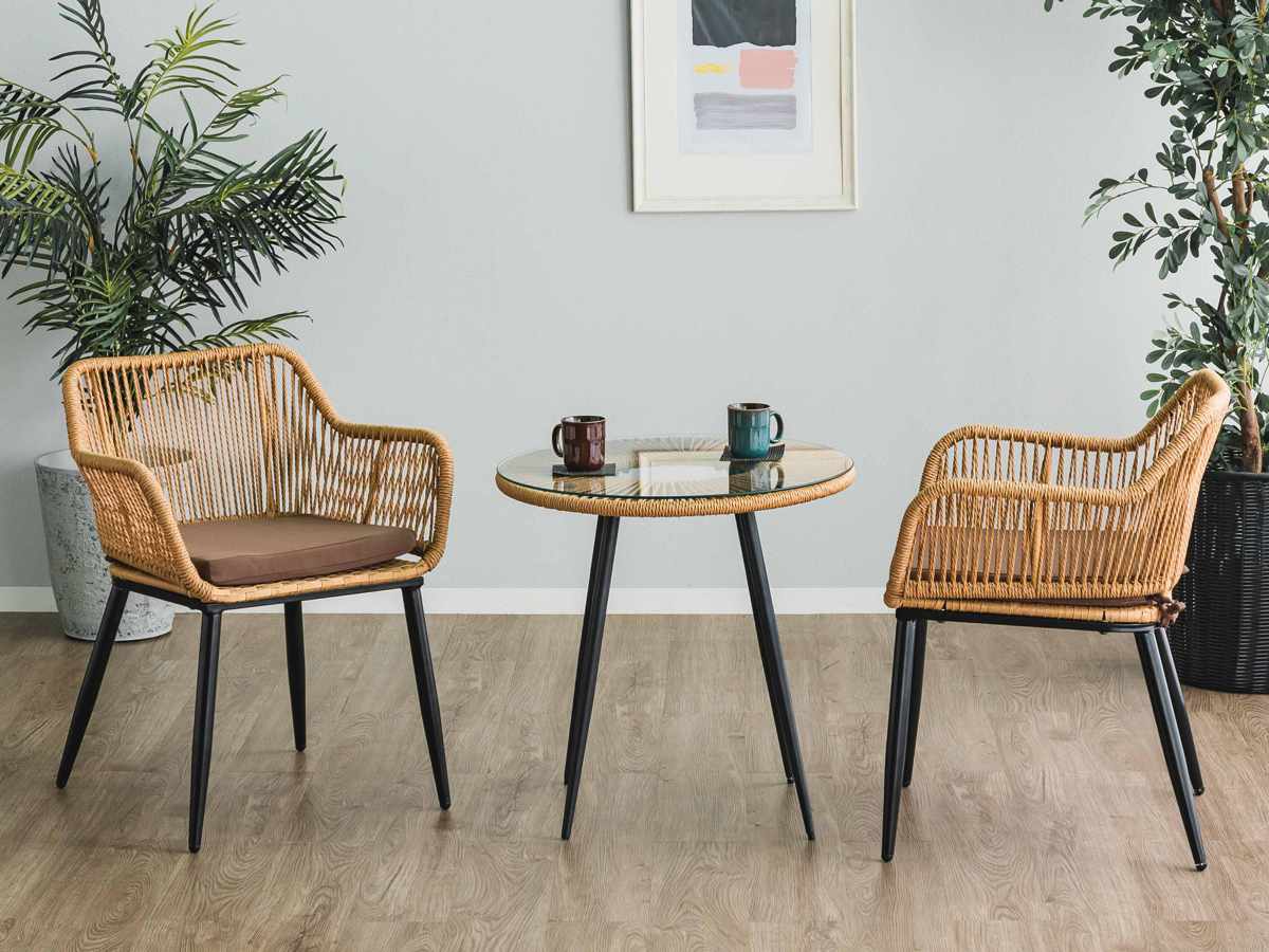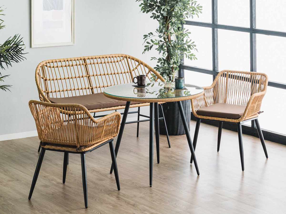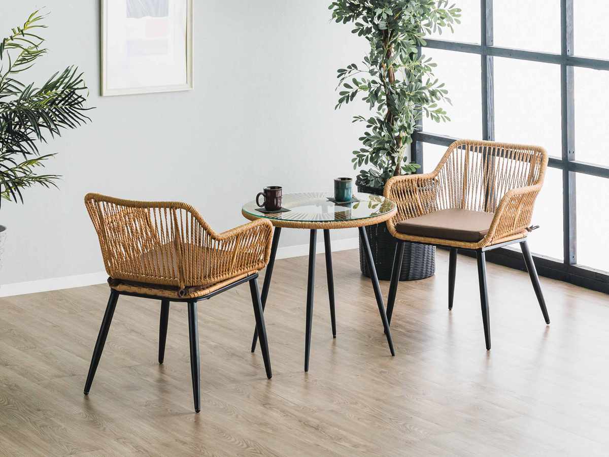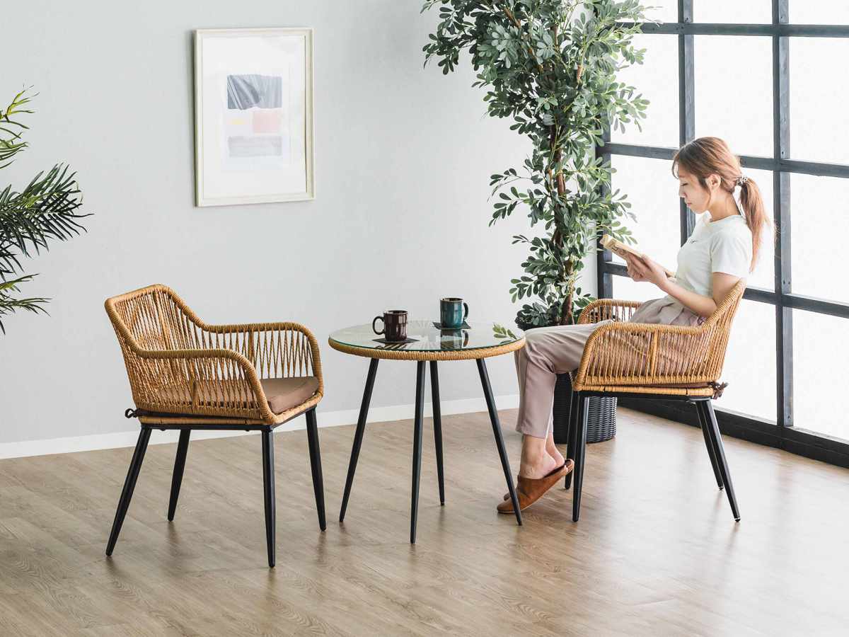耐久性が高く、水や汚れに強いポリエチレン製の人工ラタンを使用。お手入れがしやすく、長くお使いいただけます。また、天然ラタンのようなささくれやめくれが出にくいため、小さなお子様のいるご家庭でも安心です。