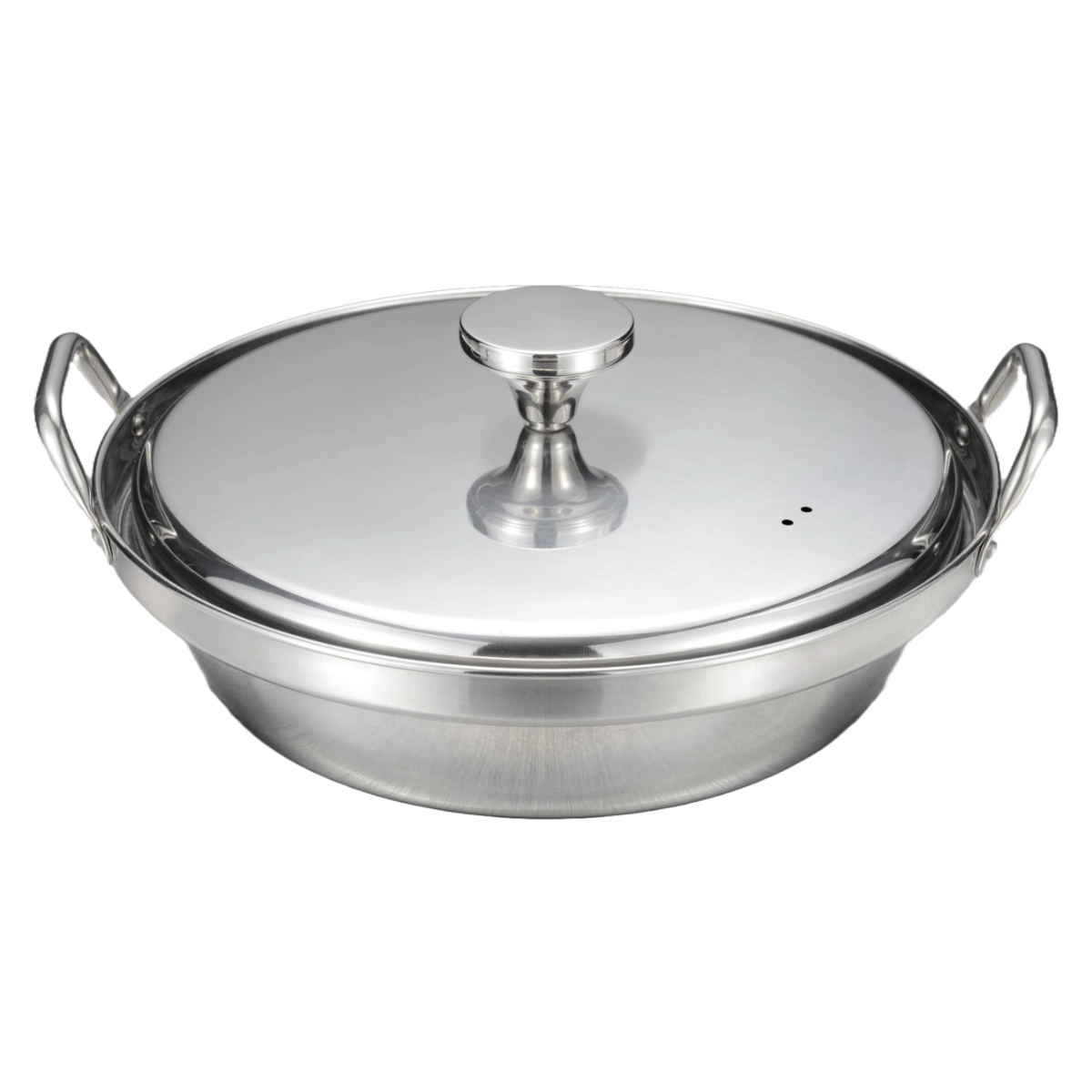 シンプルで扱いやすいステンレス鍋です。保温性が高く、匂いや汚れが付きにくいので、人気のヘルムタン(韓国の海鮮鍋)や韓国風おでん、もつ鍋などのさまざまな料理におすすめです。24cmでやや浅めのお鍋は2~4人分の調理に最適です。