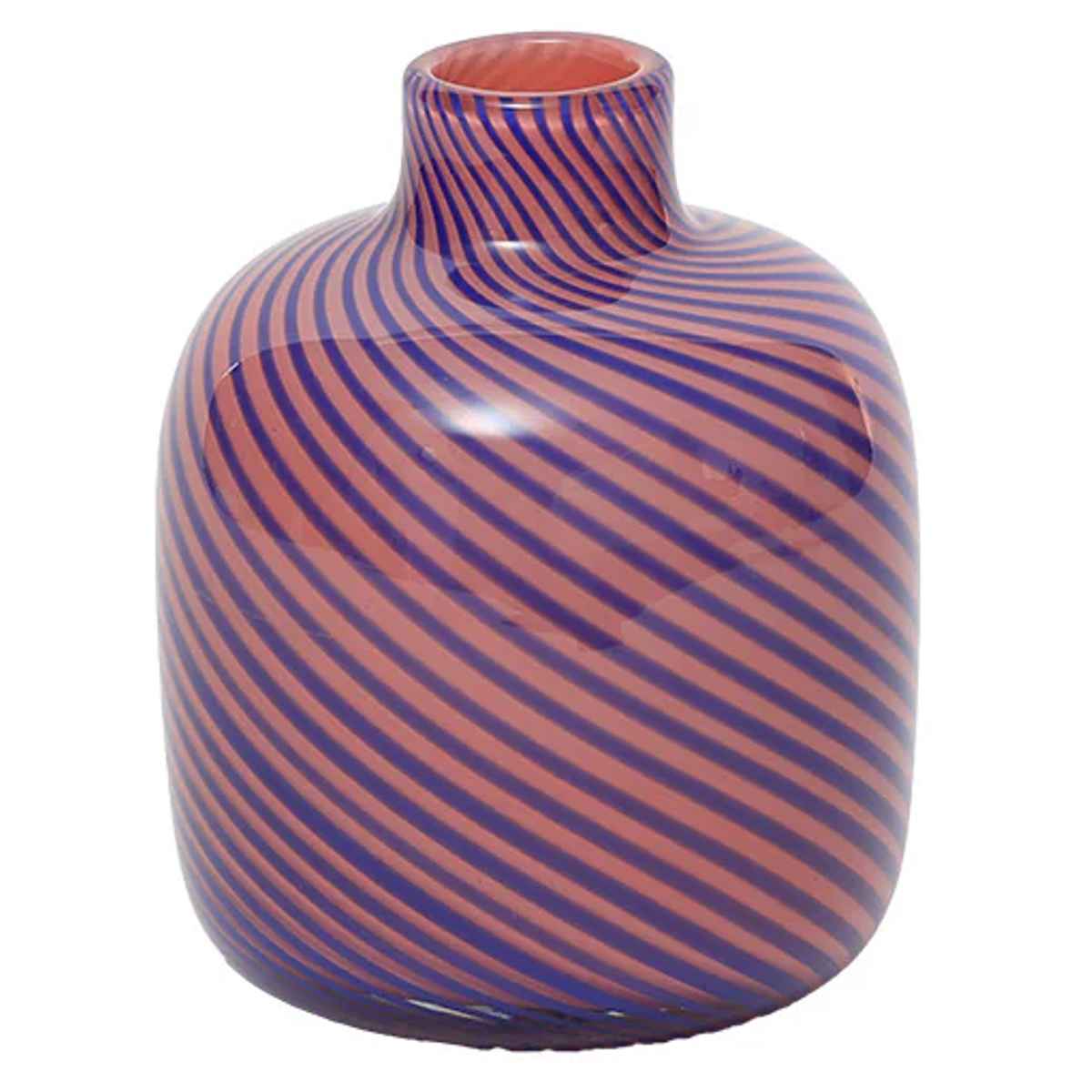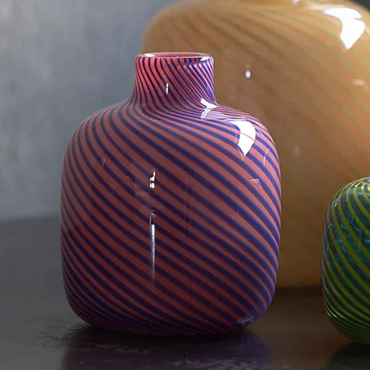 ●洗練されたストライプ模様と重厚感あふれる分厚いガラスのフラワーベース バッハです。